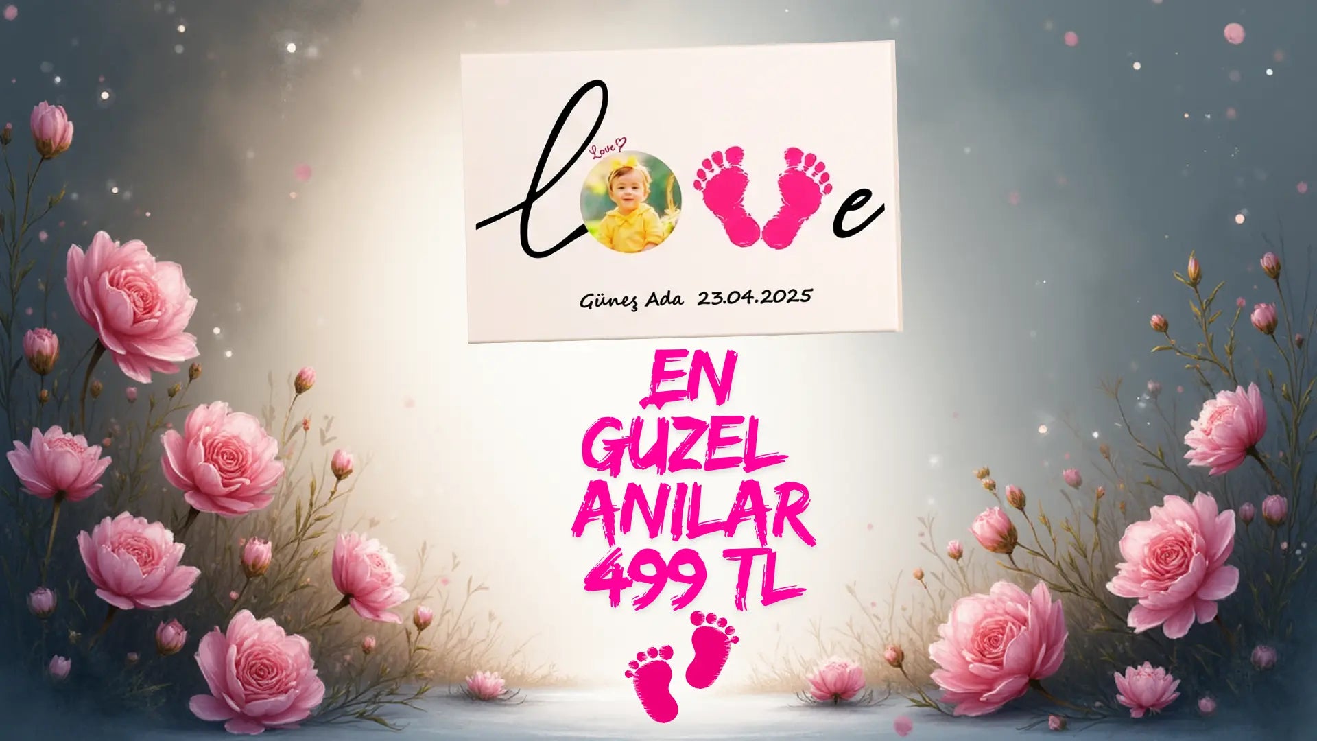 Kişiye Özel Bebek Ayak İzi ve Fotoğraflı Love Kanvas Tablo – İsimli Doğum Hatırası Bebek Odası Duvar Dekoru