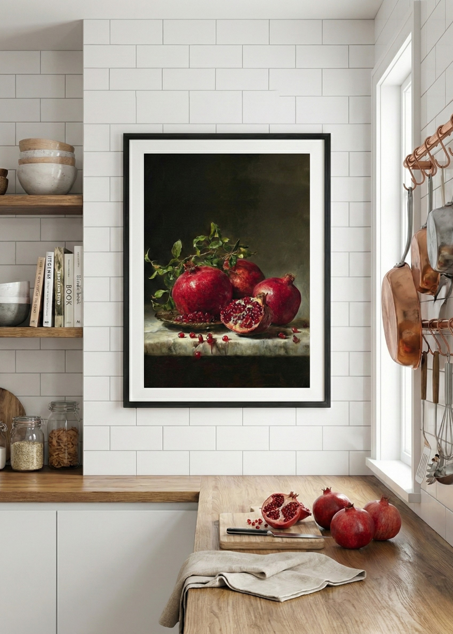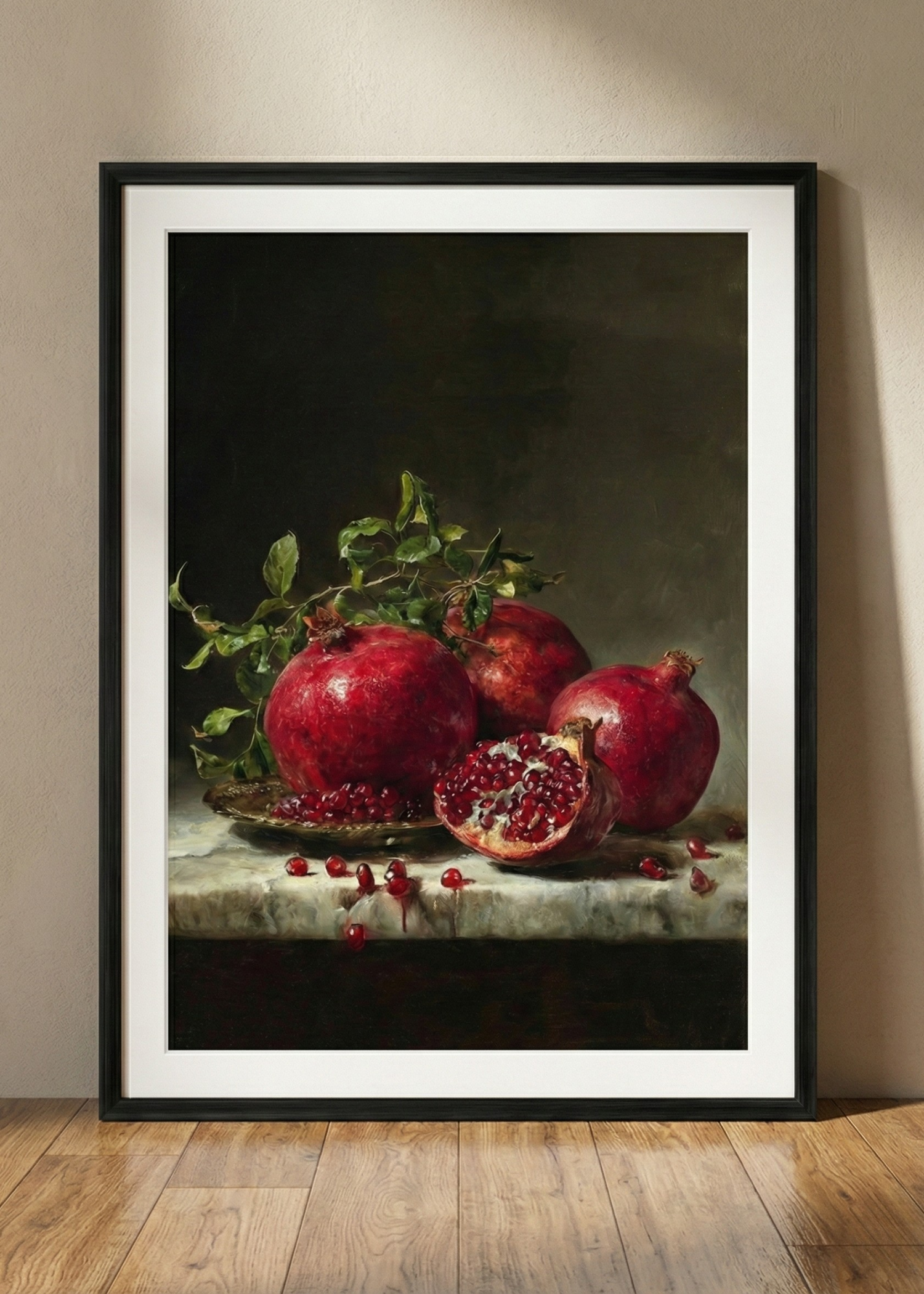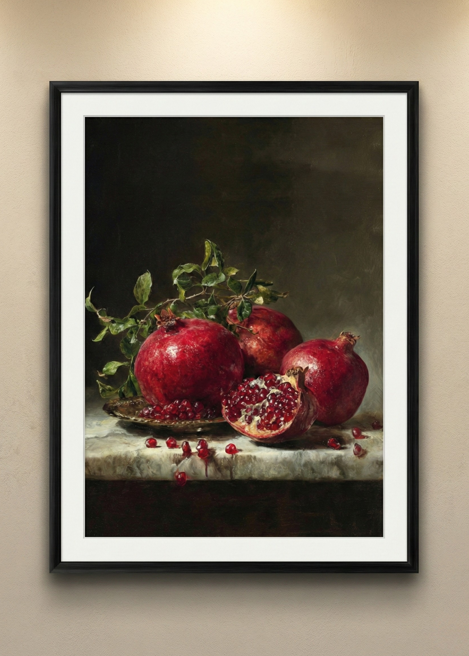 Bereket ve Bolluk Sembolü: Nar, kültürel olarak evi koruyan, bolluk ve bereketi temsil eden bir simgedir; bu da tabloyu sadece bir dekorasyon objesi değil, anlamlı bir parça kılar.
