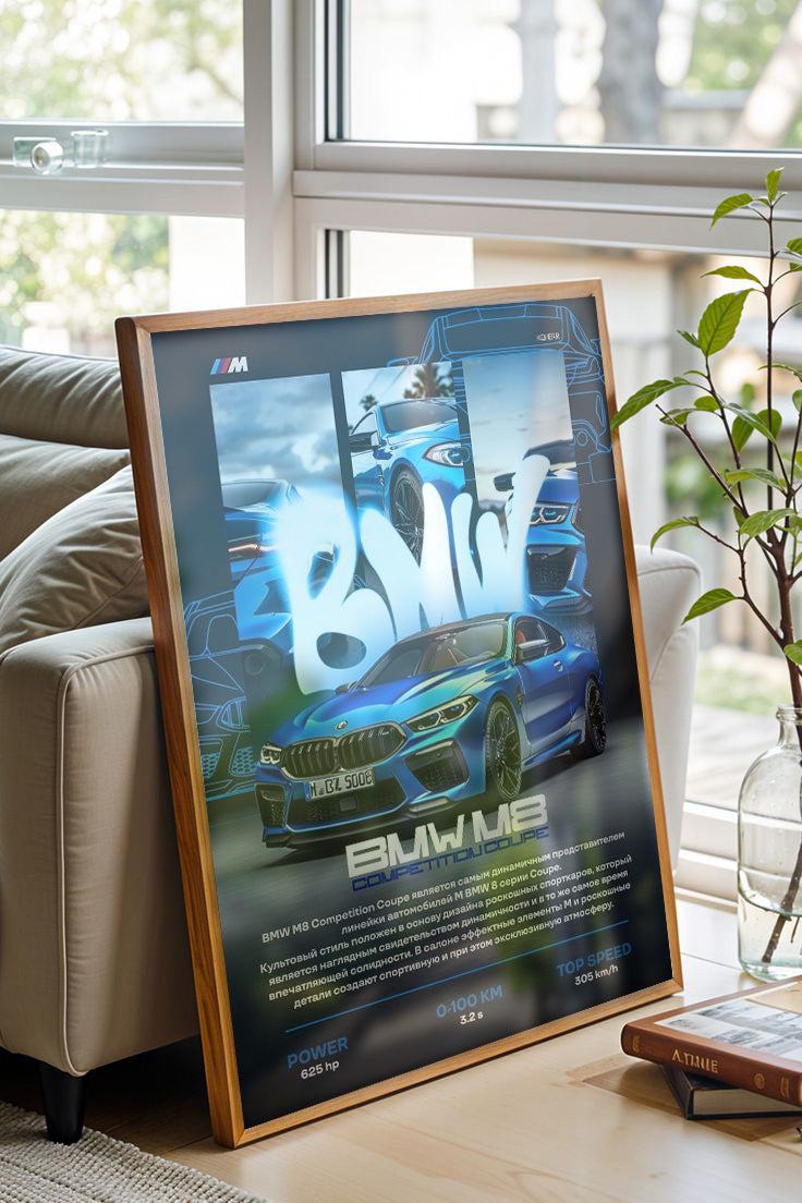 BMW M8 Competition – Mavi Spor Araba Tablo (Garaj & Ofis)
