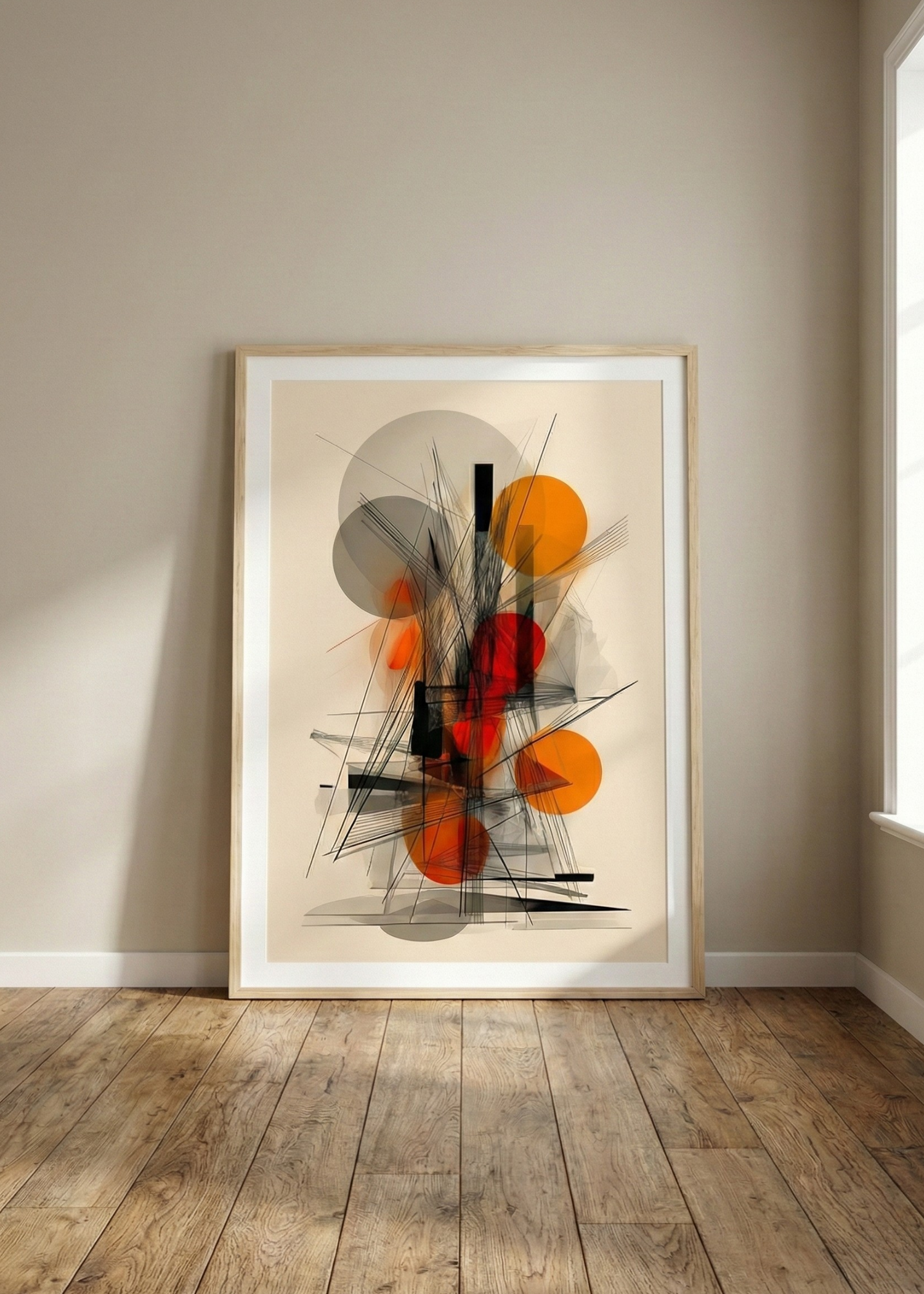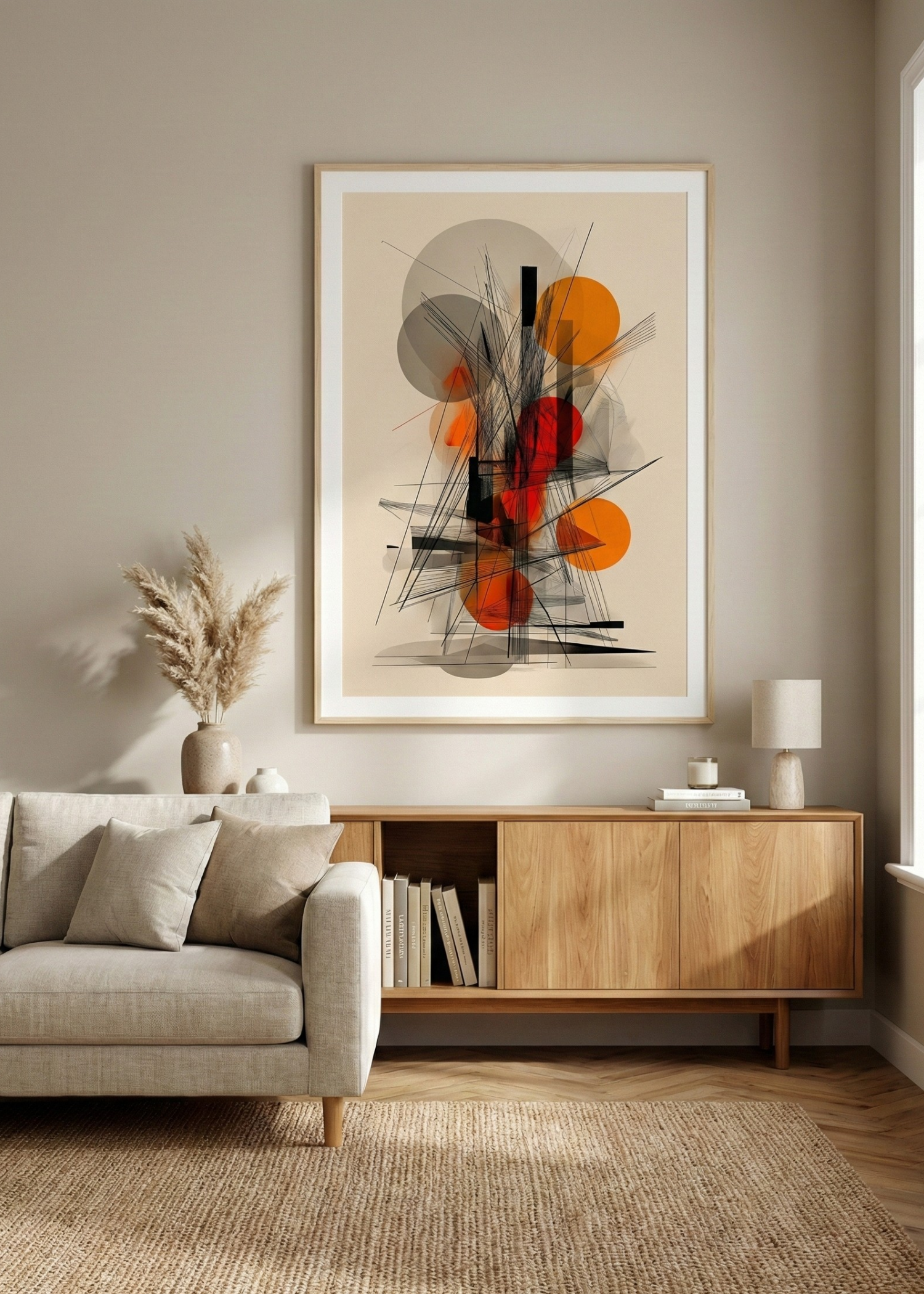 Sanatsal Derinlik: Çizgilerin ve dairelerin yarattığı geometrik kaos, minimalist dekorasyon stilleriyle kusursuz bir uyum yakaları.