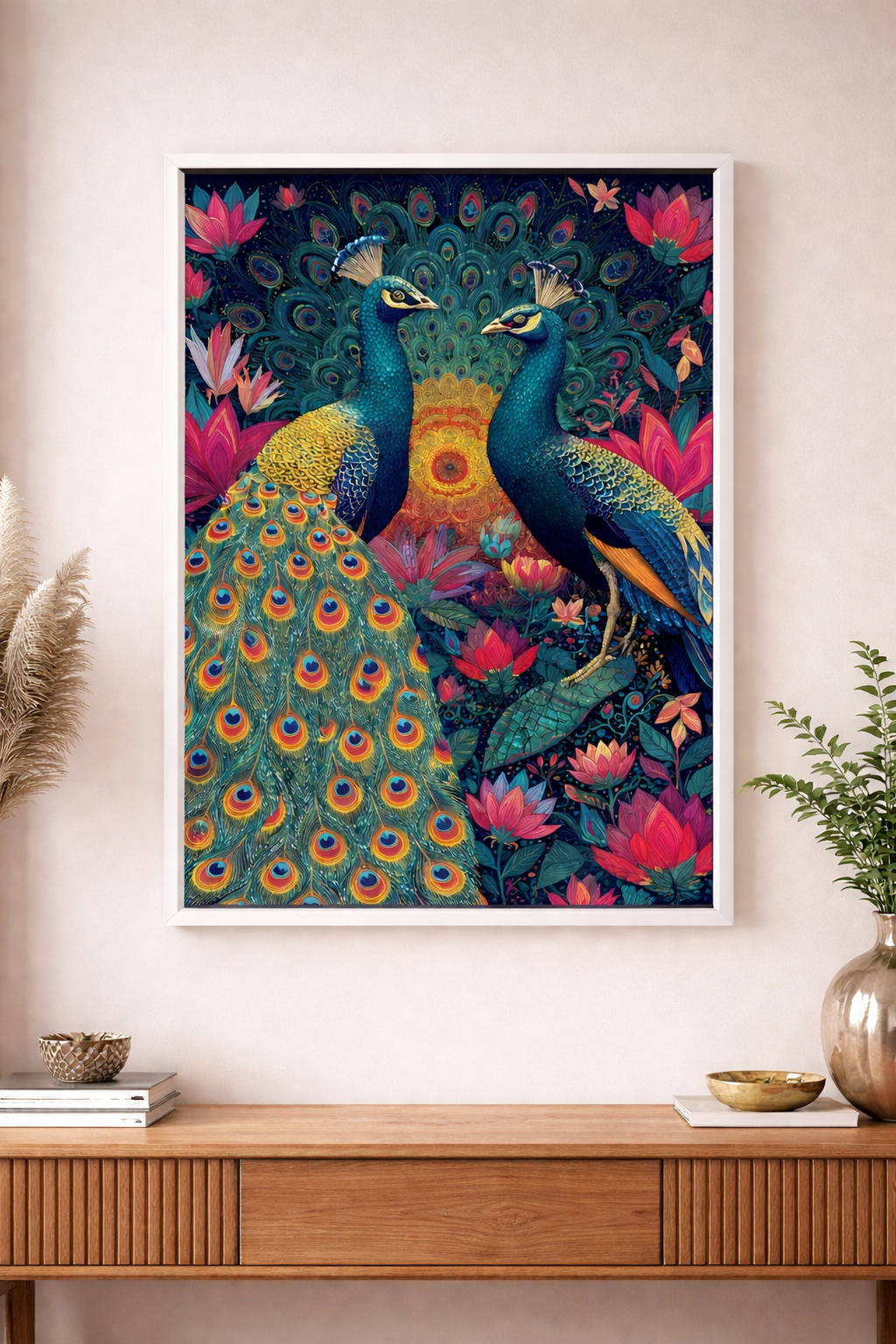 Çerçeveli Tavus Kuşu Tasarım Tablo - Modern Renkli Duvar Sanatı