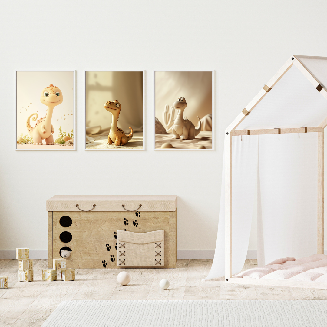 The Dinosaurs Series 3-Piece Framed Print , which brightens up the rooms of little explorers, is a wonderful decorative set that attracts children's attention with its cute and fun dinosaur figures! With its vibrant colors and fun designs, it offers little ones the opportunity to both learn and imagine.