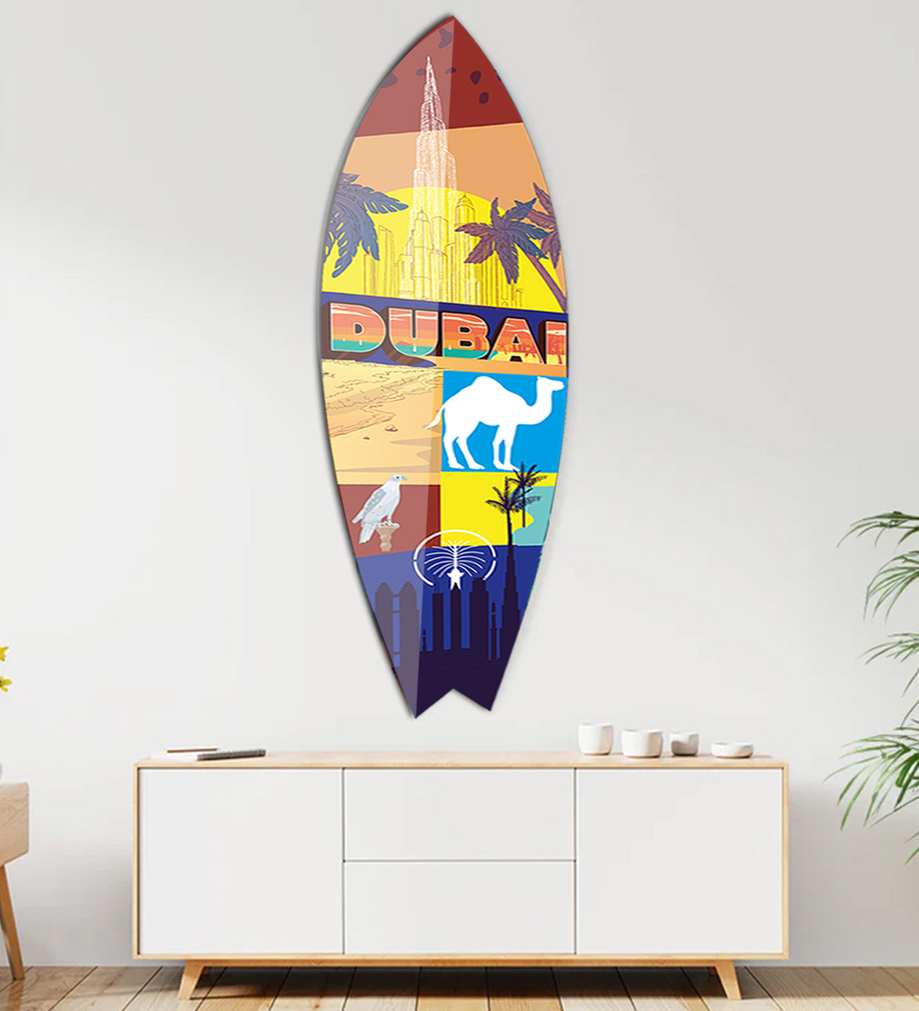 We brought writing to your living space with UV prints on plexiglass, which we designed in the form of a surfboard! ☀️🌊