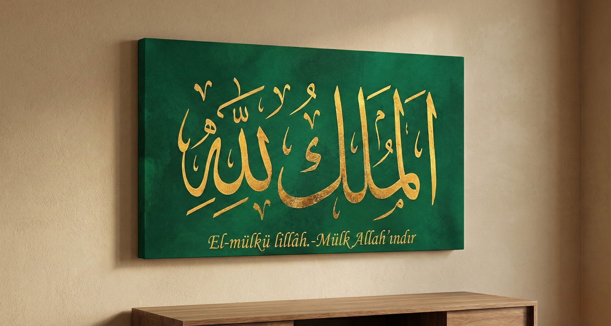 El Mülkü Lillah Mülk Allahındır Yazılı Kanvas Tablo