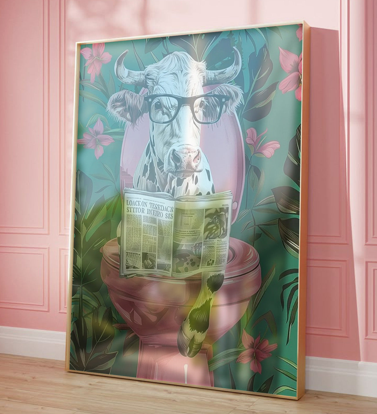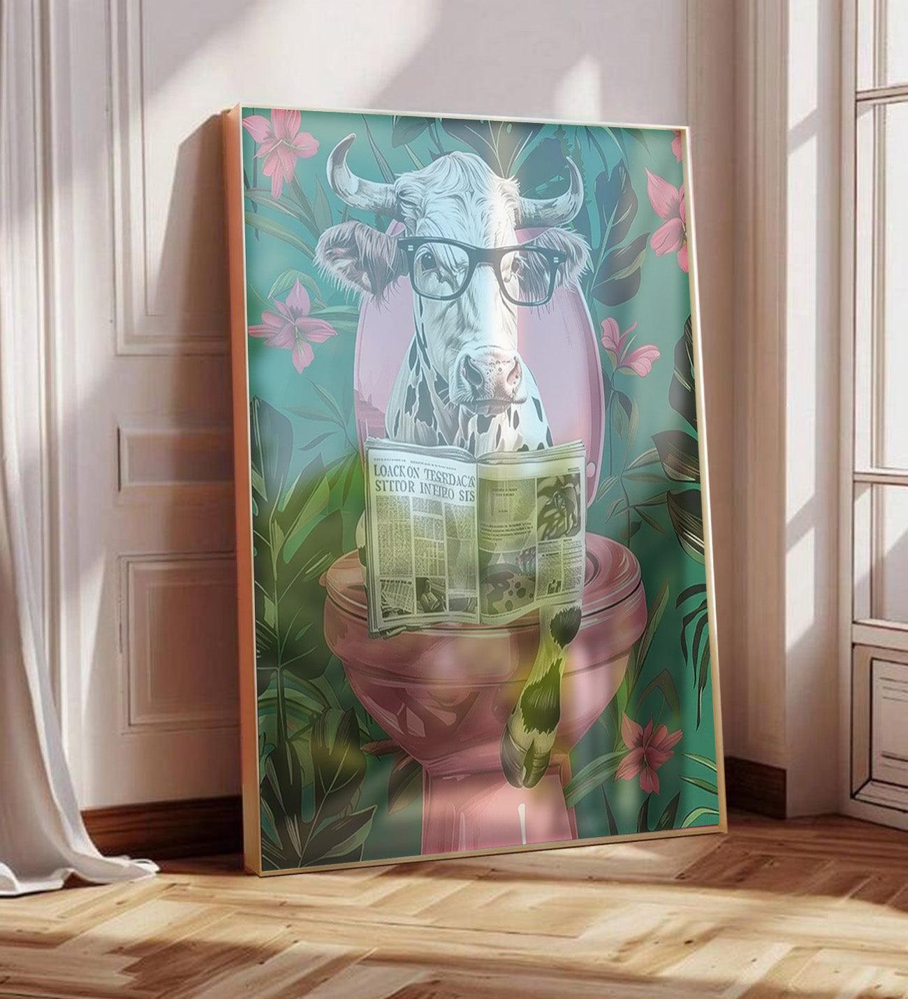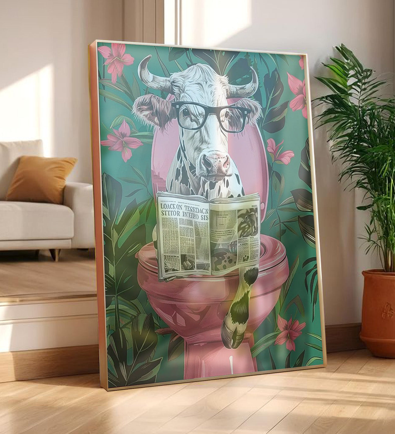 This cool cow, processed on a plexiglass surface with UV printing technology, is here to add elegance to your walls with its wooden frame! 😎