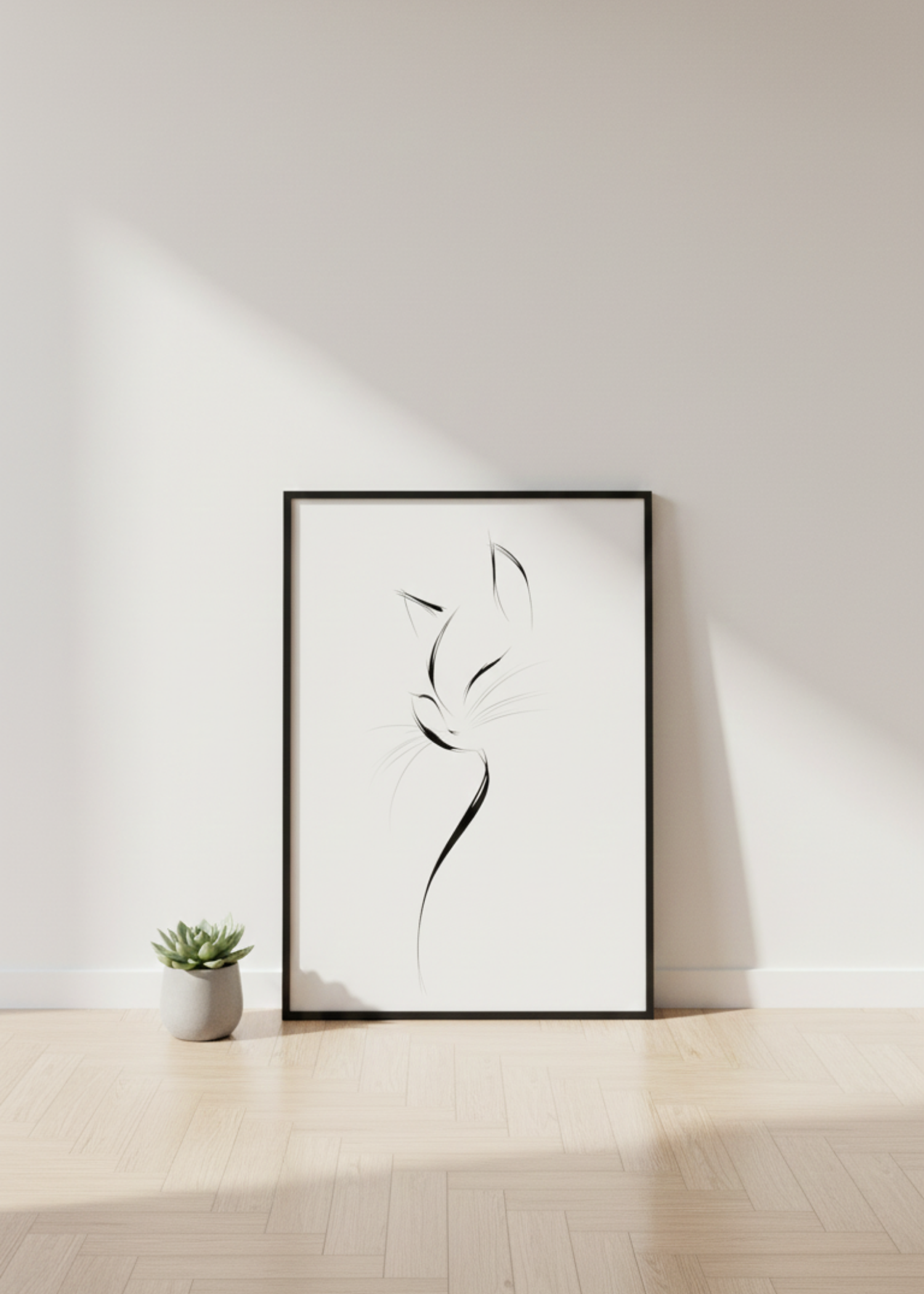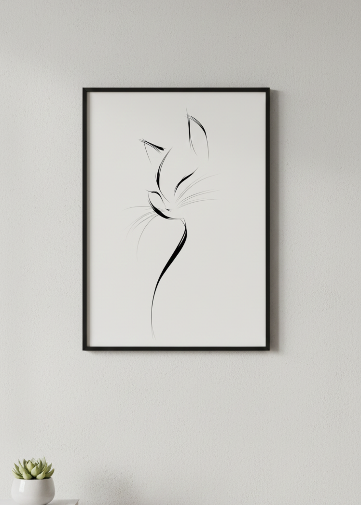 İskandinav Stil Tek Çizgi Kedi Figürlü Çerçeveli Tablo - Şık Mutfak ve Salon Dekoru