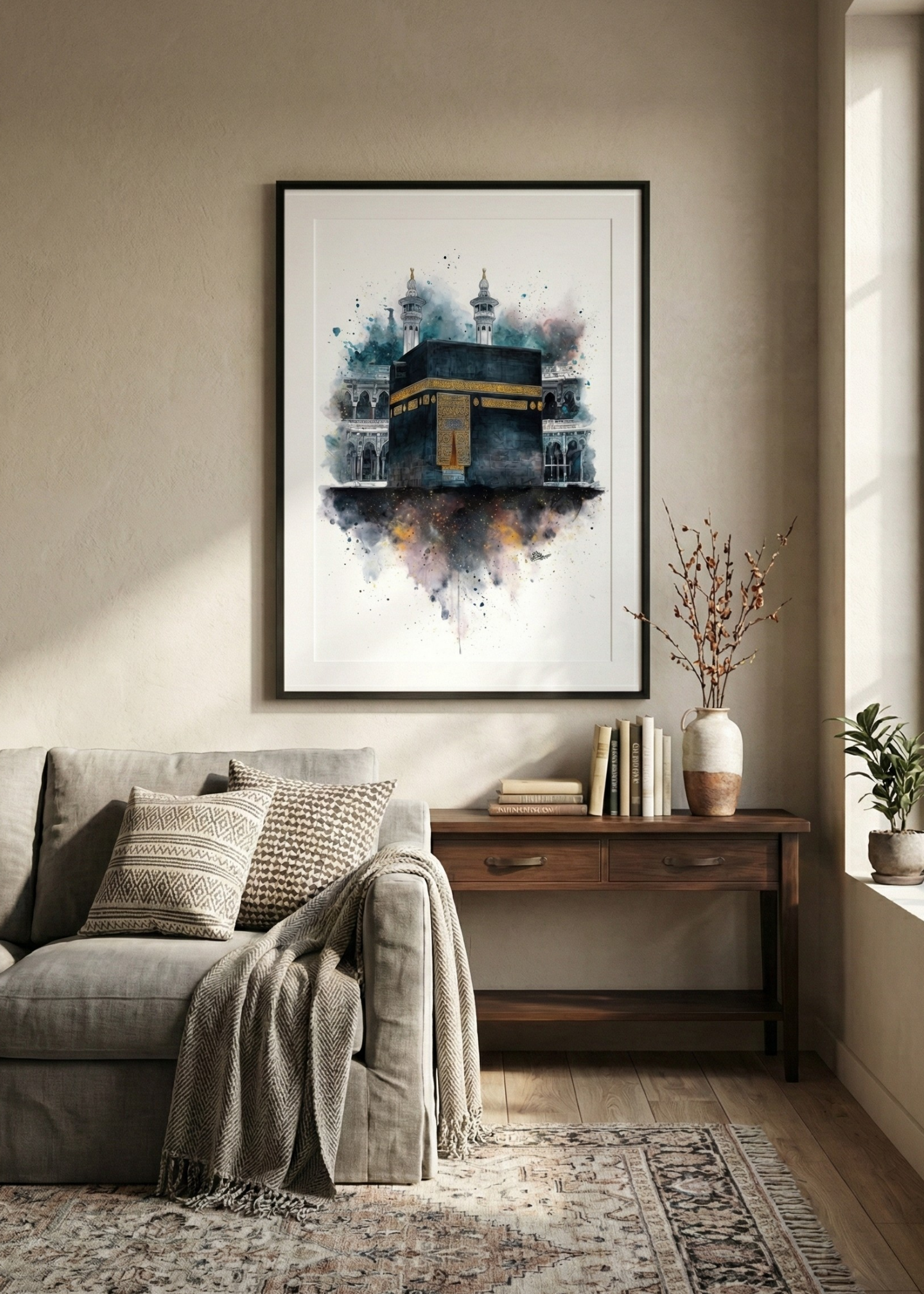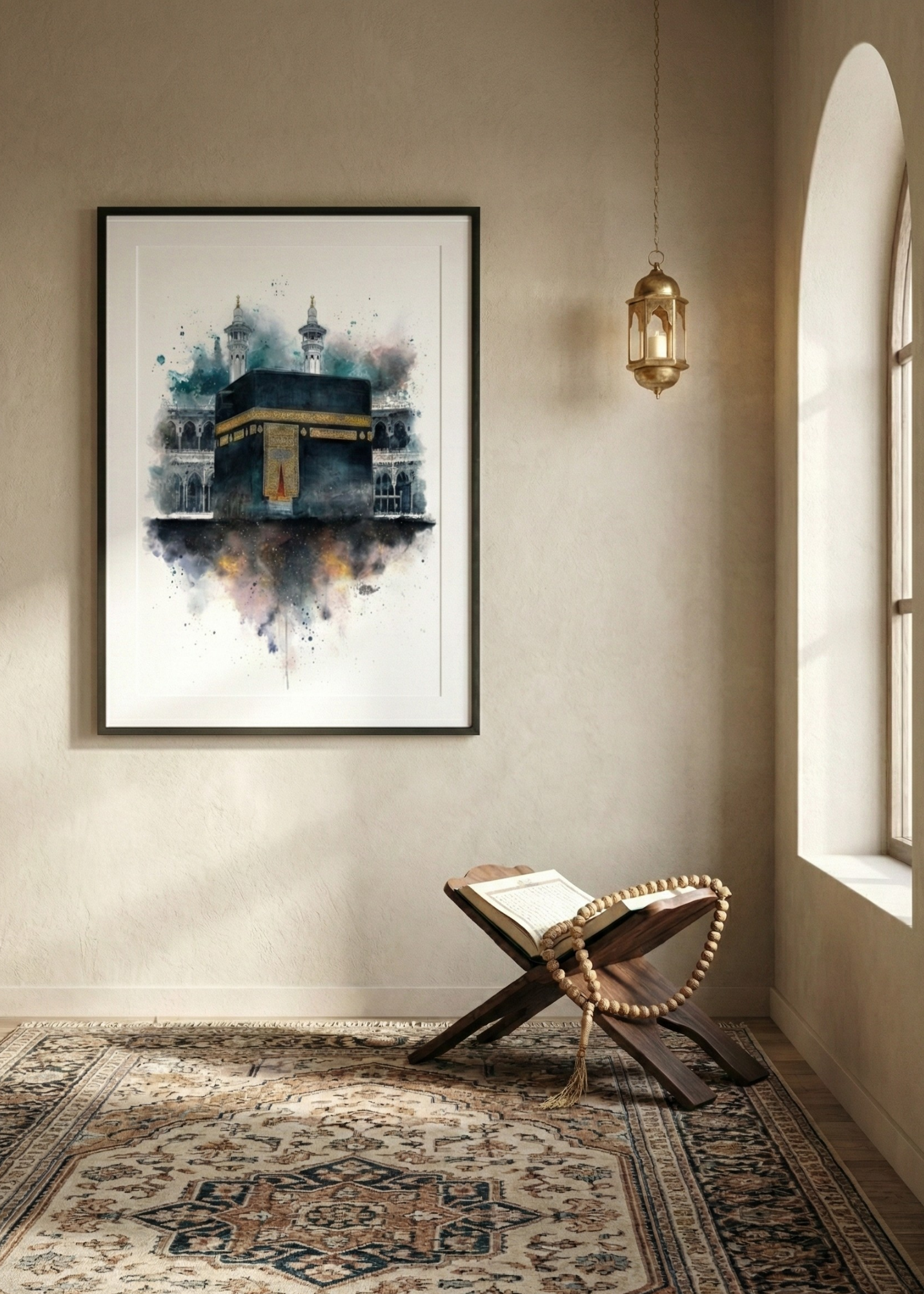 Evinize manevi bir derinlik ve sanatsal bir zarafet katmaya hazır mısınız? Dekor Paleti’nin özel koleksiyonunda yer alan bu Kabe tasarımı; kutsal mekanın heybetini, modern sulu boya tekniğinin akışkanlığı ve altın ışık detaylarıyla buluşturuyor. Hem geleneksel hem de modern dekorasyon stilleriyle kusursuz uyum sağlayan bu eser, mekanınızın aurasını anında değiştirecek.