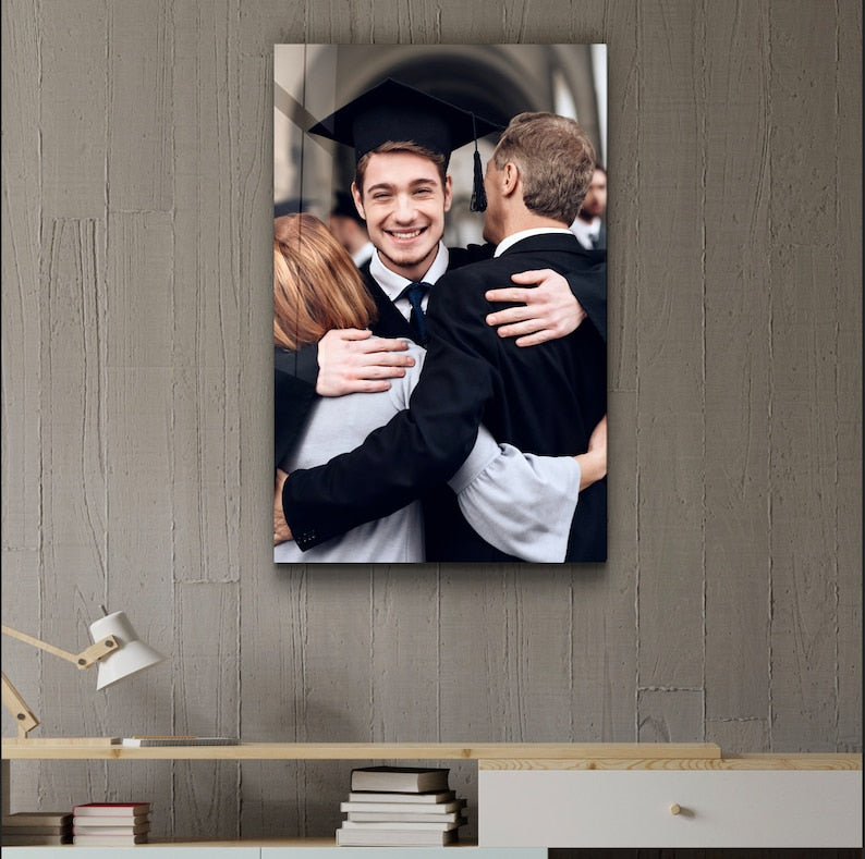 If you're looking to give your loved ones a stylish and meaningful gift, a Personalized Glass Wall Art is perfect for you! We create a modern and aesthetically pleasing piece of decor by engraving your special photos and any text you desire onto the glass surface.