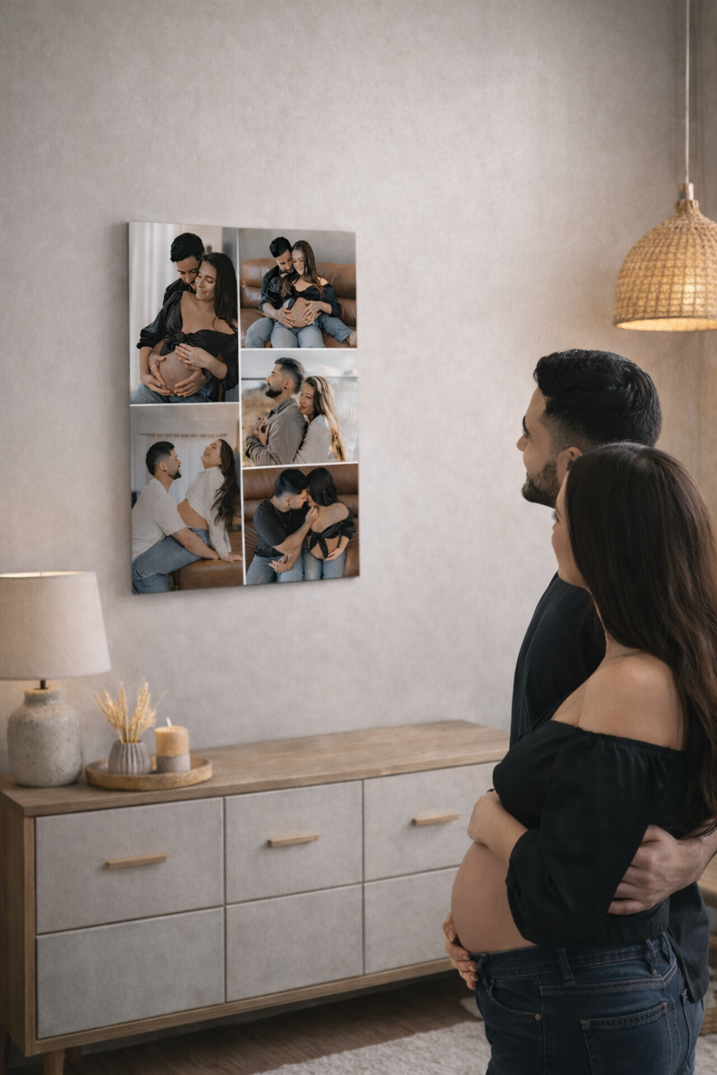 Bu kişiye özel hamilelik anı kolaj tablosu, anne ve baba adaylarının en duygusal anlarını tek bir tabloda bir araya getirir. Hamilelik sürecindeki sevgi, heyecan ve mutluluk dolu anlarınız, modern ve şık bir kolaj tasarımıyla evinizin en özel köşesinde yerini alır.