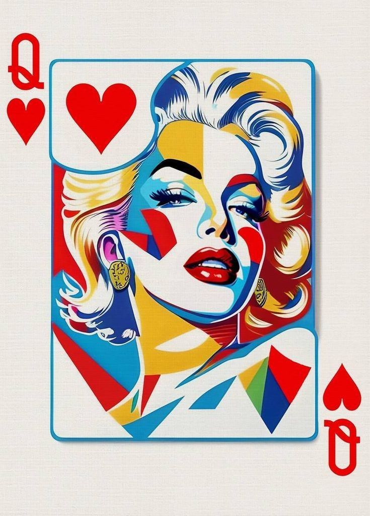 The iconic beauty and elegance of Marilyn Monroe meets the Queen of Hearts design! This special poster adds an artistic and stylish touch to your living spaces and is a great choice for those who love retro decor.