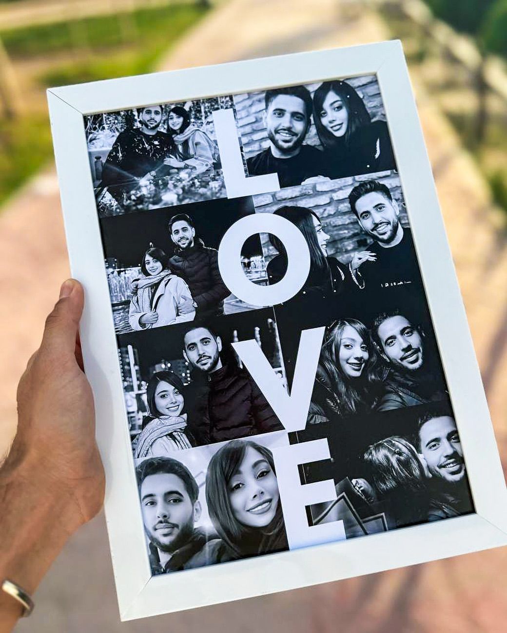 The most special way to express your love: A Framed Special Painting for Lovers with 8 Photos Written "Love ." This decorative painting, which can be prepared with both romantic and personal details, offers an unforgettable gift option for your loved ones.