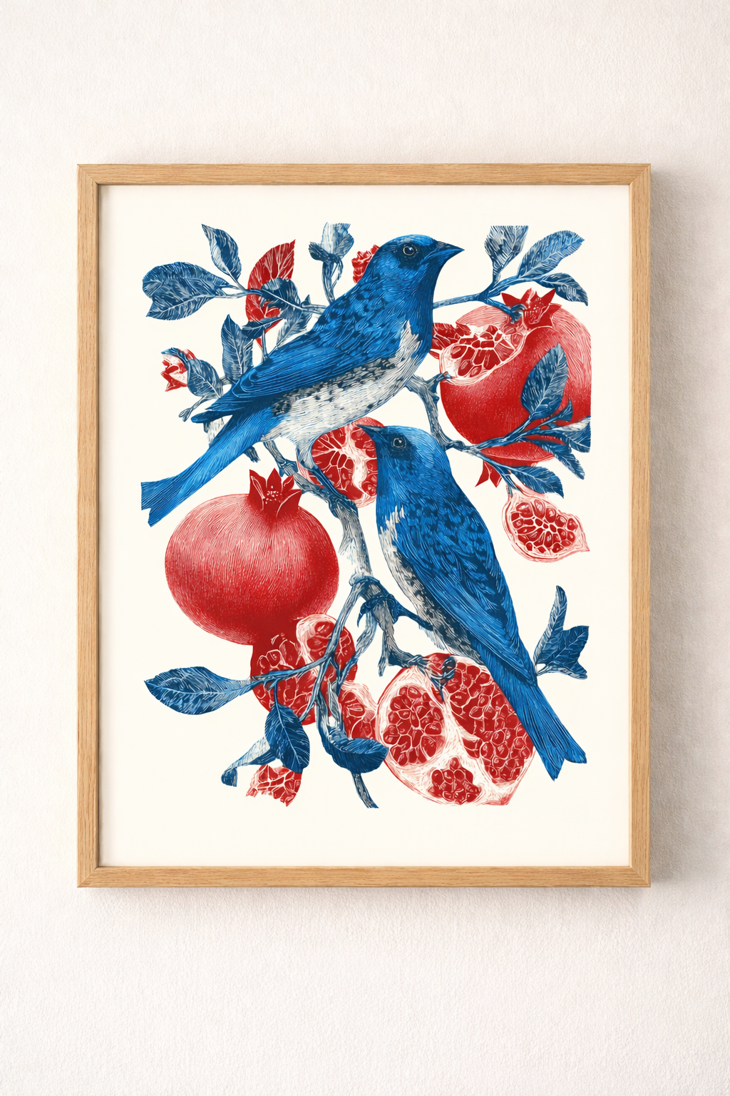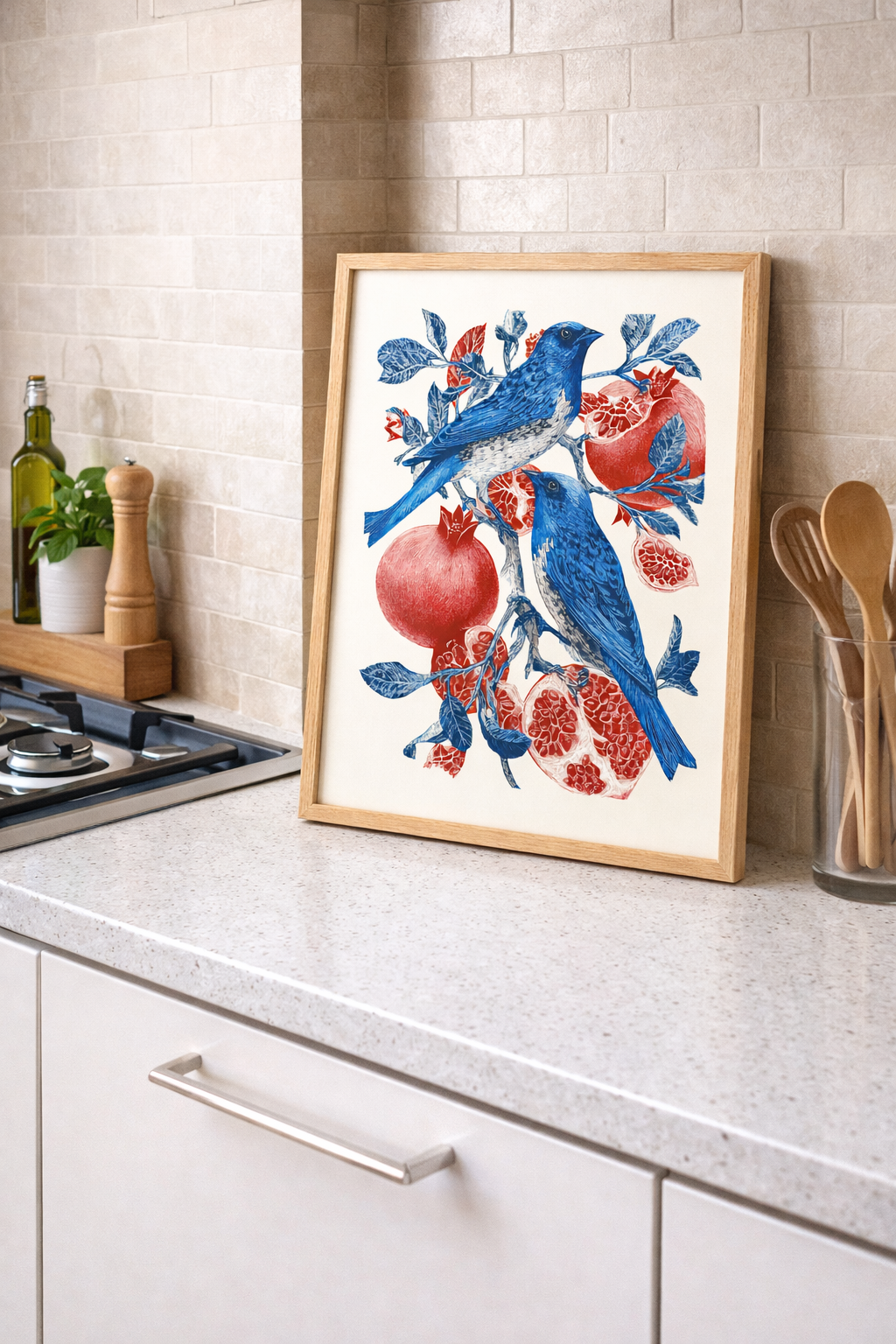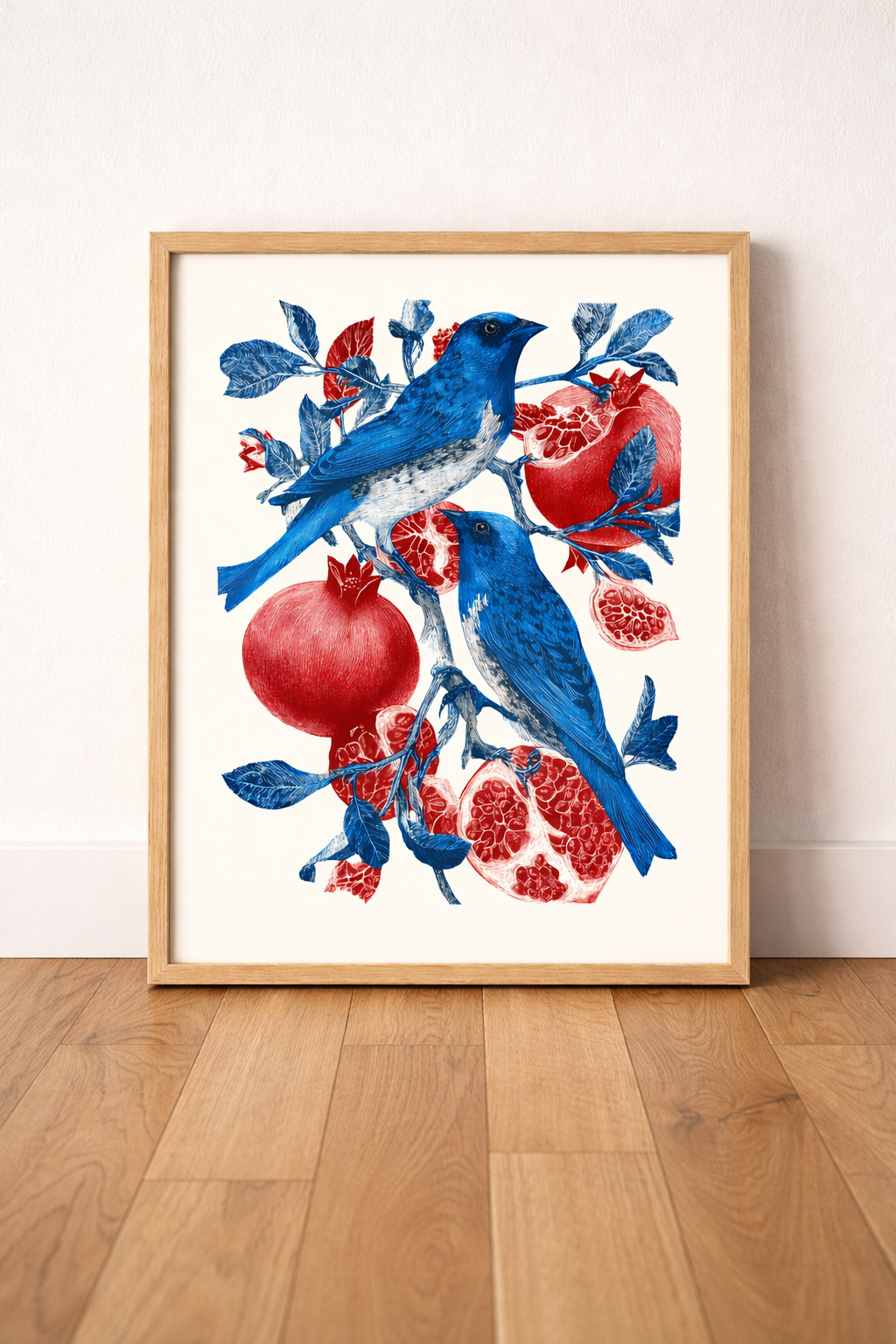 Mavi Kuş ve Bereket Narı İllüstrasyon Çerçeveli Tablo - Mutfak ve Salon Dekoru