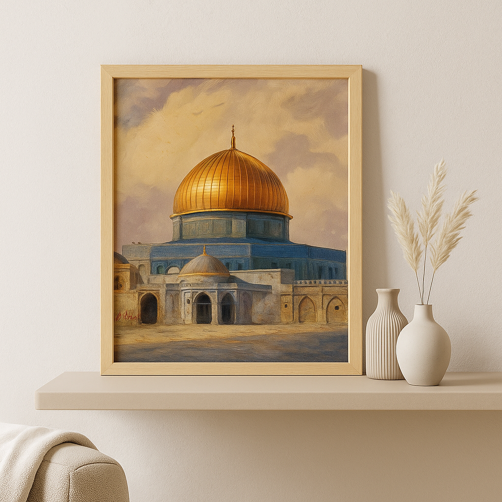Manevi bir atmosfer ve estetik dokunuşu bir arada sunan Mescid-i Aksa Tablosu, evinizin en özel köşelerinde huzur dolu bir dekoratif detay oluşturur.