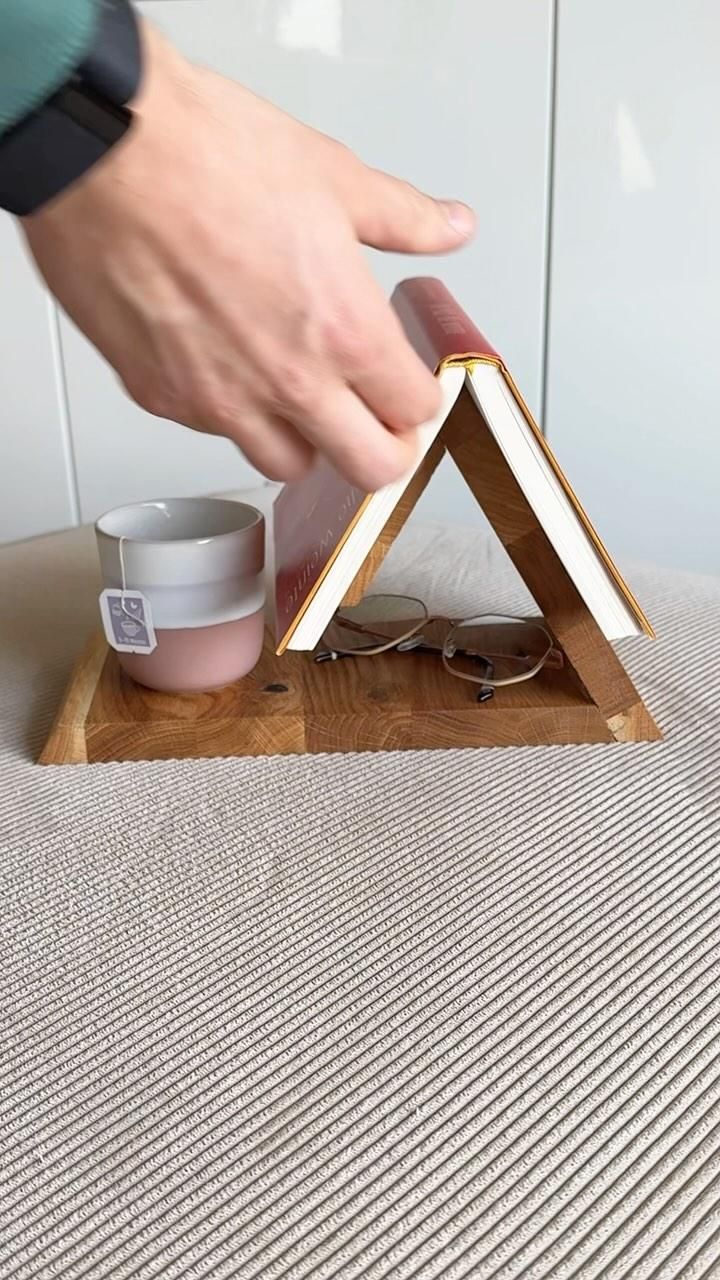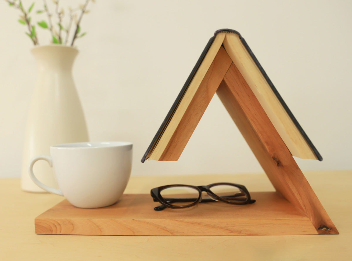 Minimal Üçgen Ahşap Kitap Standı – Masaüstü Okuma & Dekor