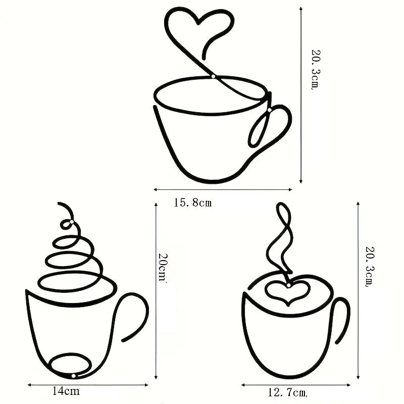 Give your home a modern feel with these creative coffee-themed wall hangings, a set of 3 pieces that will add elegance to your kitchen and coffee corner! Designed with minimalist lines, the coffee cup patterns add a warm and aesthetic touch to your walls.