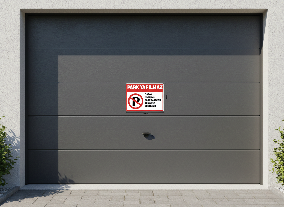 Park Yapılmaz Garaj Girişidir Uyarı Levhası, araçların garaj ve bina girişlerine park etmesini önlemek için tasarlanmıştır. 35x25 cm ölçülerindeki kırmızı beyaz dikkat çekici tasarımı sayesinde uzaktan kolayca fark edilir. Kendinden yapışkanlı arka yüzeyiyle vida, matkap veya montaj aparatı gerektirmeden hızlı ve pratik şekilde uygulanabilir. Garaj, bina girişi, site otoparkı, depo, işyeri veya özel mülklerde kullanım için idealdir. Dış mekân koşullarına dayanıklı malzemesi sayesinde güneş, yağmur ve nemden etkilenmeden uzun ömürlü kullanım sağlar. Net ve profesyonel görünümüyle izinsiz parkları önler, düzenli ve güvenli alan oluşturur.