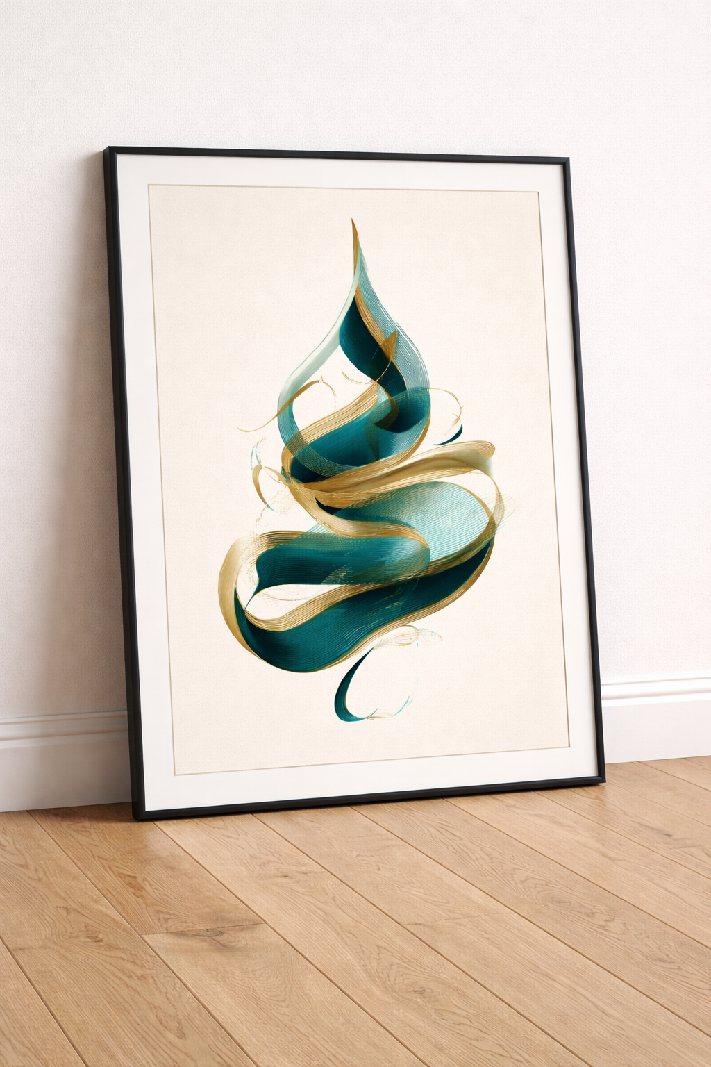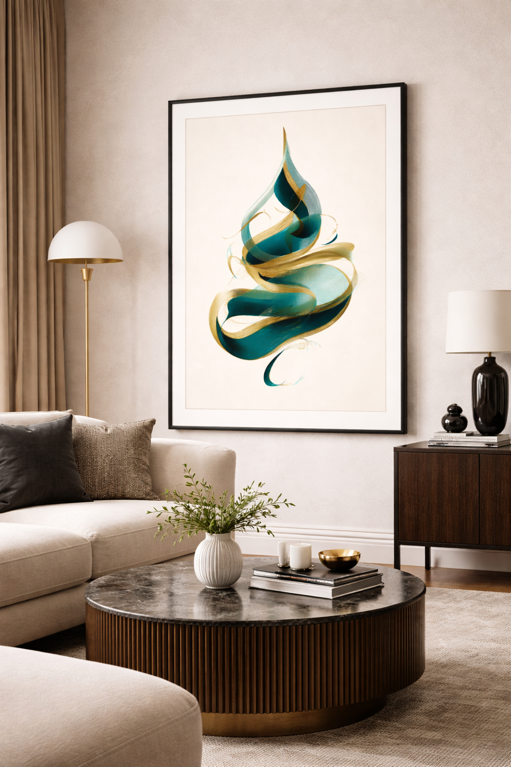 Yaşam alanlarınızda hem estetik bir derinlik hem de modern bir estetik yaratmaya hazır mısınız? Dekor Paleti'nin uyumu hazırlanmış bu özel tasarım; Hatnın asil "Vav" tarzından ilham alınarak, modern soyut sanatın sistem çizgileriyle yeniden yorumlanıyor. Turkuazın dinginliği ile altın sarısının prestijli parlaklığını birleştirici bu eser, duvarlarınızda şık bir odak noktası oluşturacak.