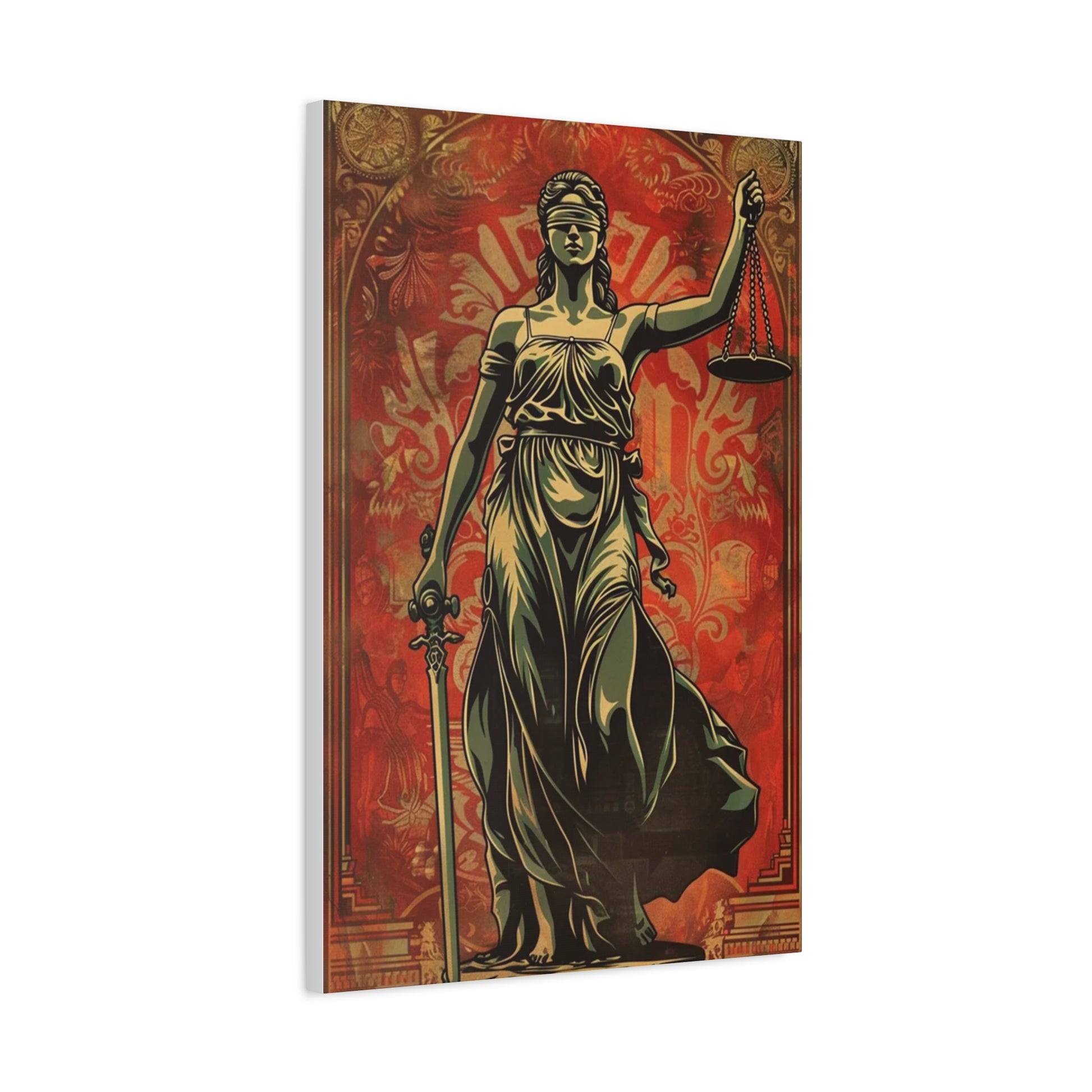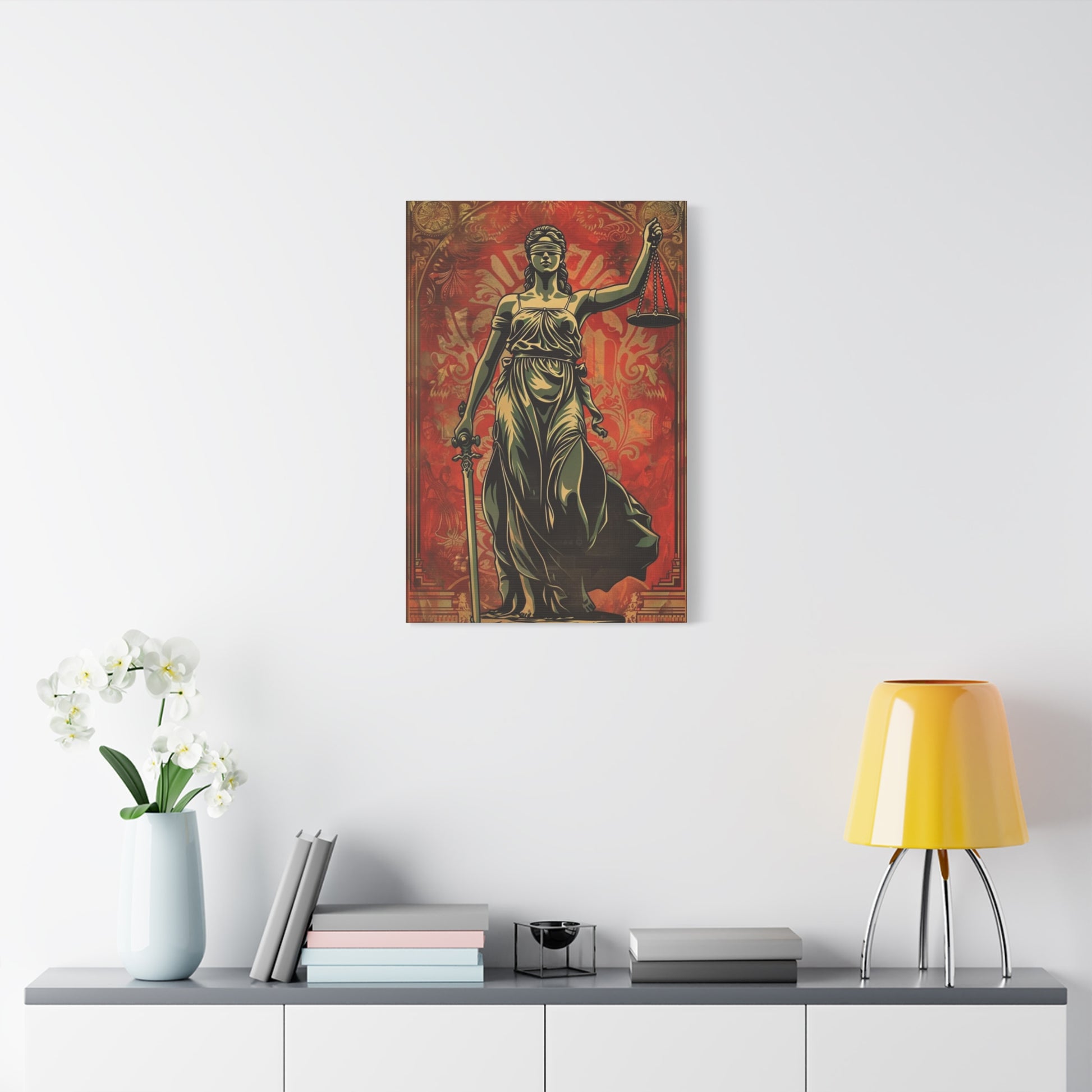Themis , the symbol of justice, comes to life in a stylish canvas print specifically designed for lawyers' offices and law-themed workspaces. This print is an ideal choice for those seeking a decorative element that is both aesthetically pleasing and meaningful.