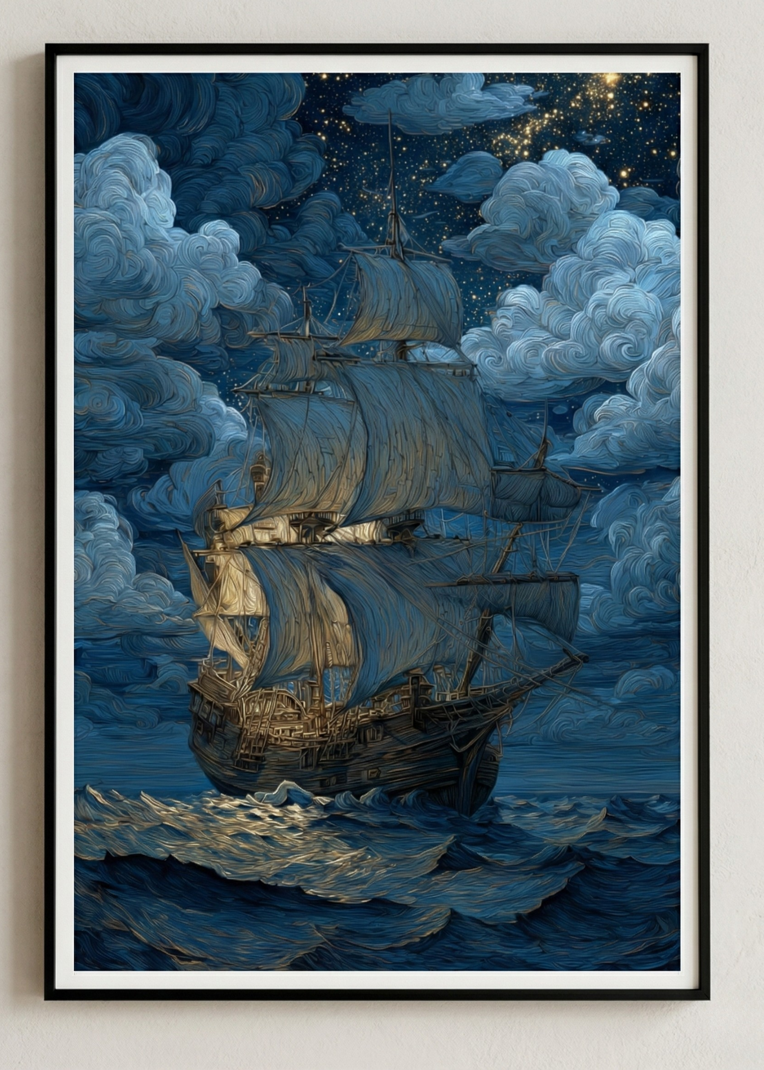 Duvarlarınızda bir başyapıtın heybetini hissetmeye hazır mısınız? Dekor Paleti’nin titizlikle hazırladığı bu tasarım; denizin sonsuzluğunu ve gece gökyüzünün mistik enerjisini, empresyonist sanatın en güçlü fırça darbeleriyle buluşturuyor. Van Gogh’un "Yıldızlı Gece" stilinden ilham alan bu devasa yelkenli illüstrasyonu, mekanınıza anında sanatsal bir derinlik ve prestij katacak.