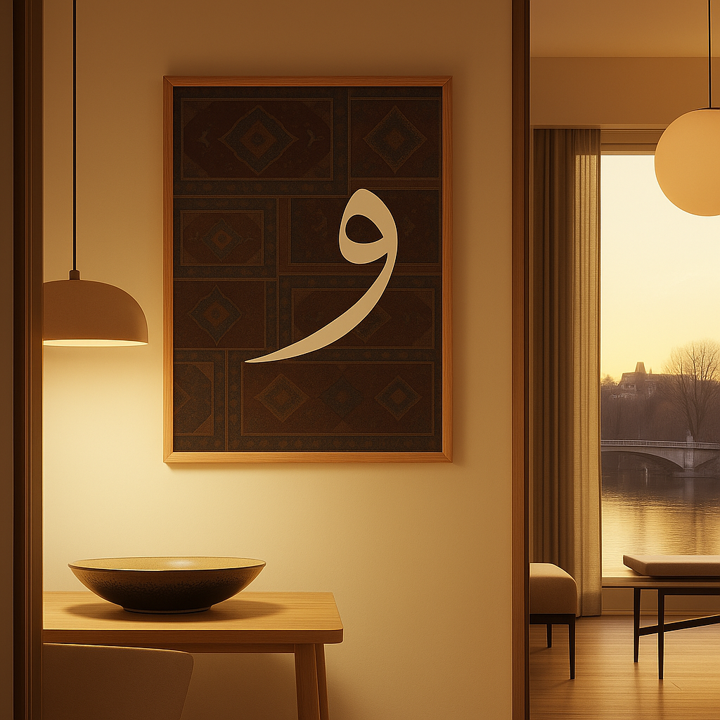 ✔️ Anlamlı Tasarım: Arapça alfabesinin özel harflerinden “Vav”, tevazu ve birliği simgeler. Manevi derinliğiyle dekorasyonunuza farklı bir ruh katar.