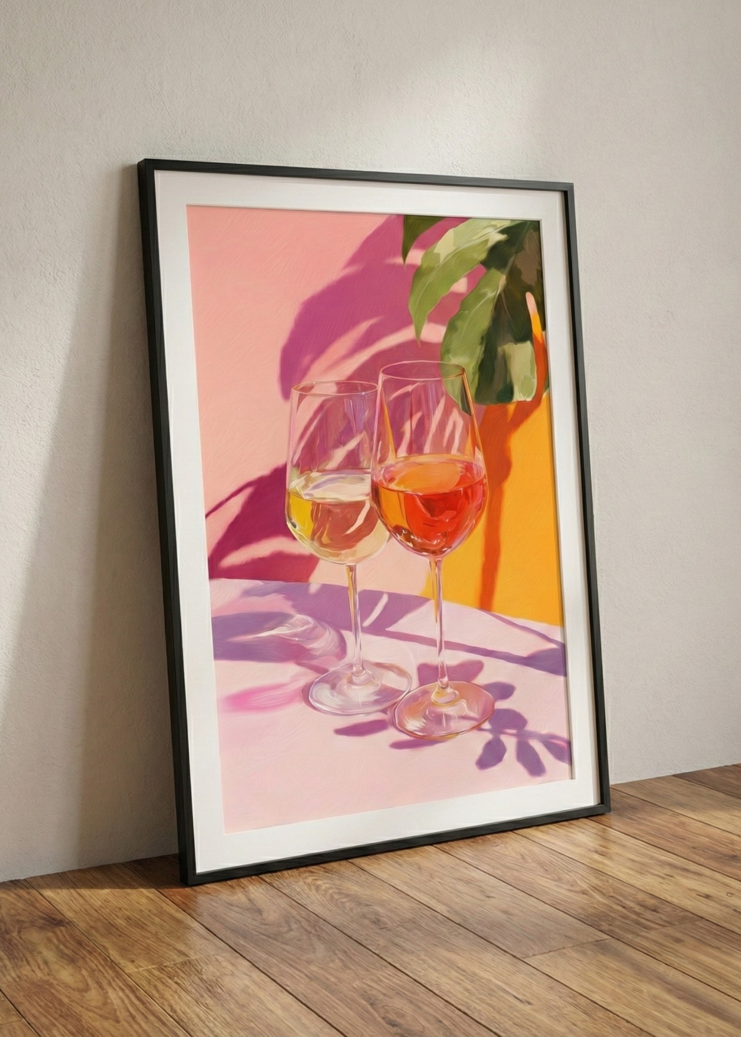 Mutfağınızda sadece yemek pişmesin, sanat da konuşsun! Dekor Paleti tarafından mutfak dekorasyonu için özel olarak tasarlanan bu çerçeveli tablo; sıcak yaz güneşi altında parlayan şarap kadehlerini, tropikal bir esintiyle duvarlarınıza taşıyor. Mutfağınızın veya yemek odanızın en boş duvarını bile bir anda şık bir bistro köşesine dönüştürecek bu eserle, dekorasyonunuzu tamamlayın.