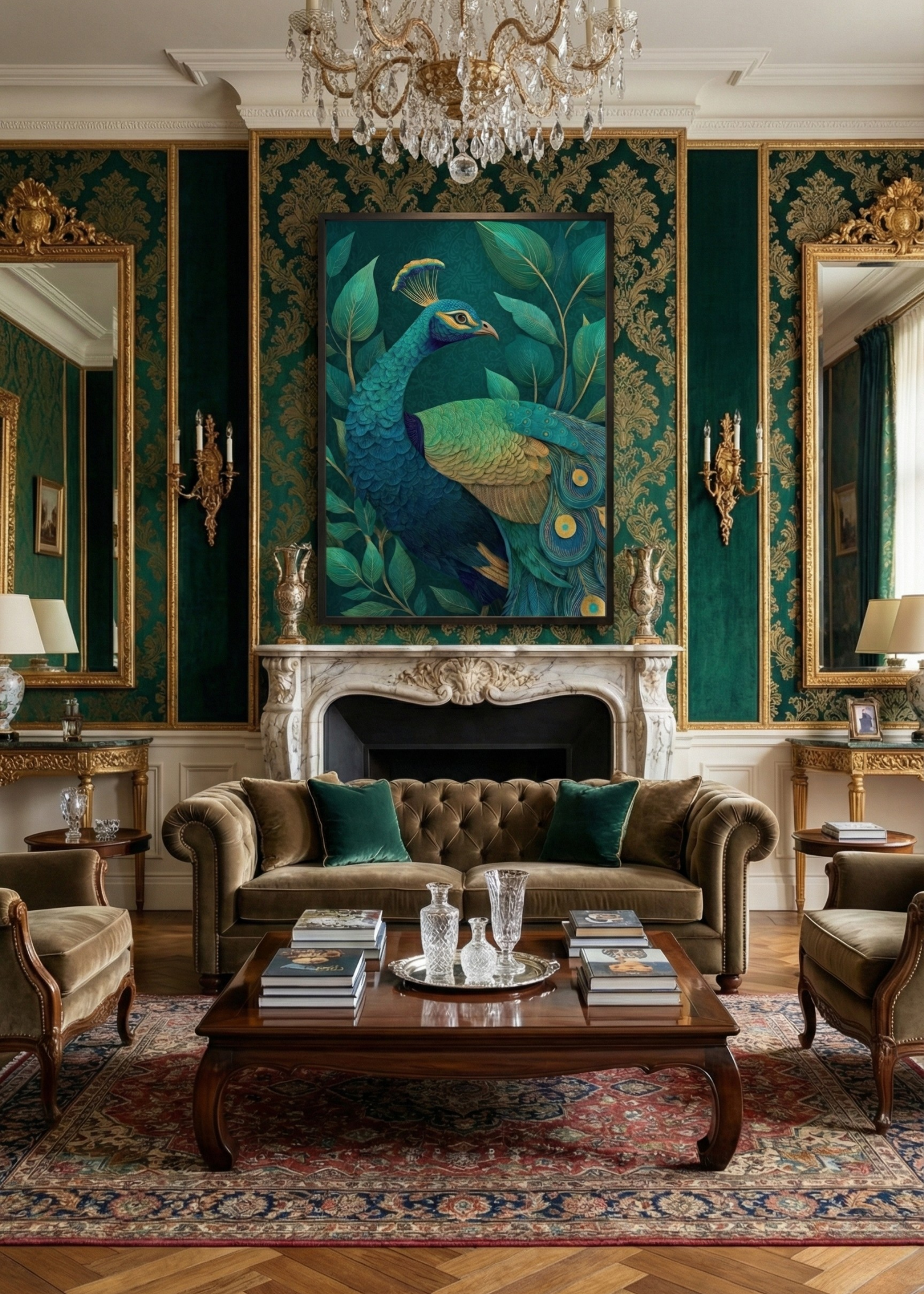 Zümrüt Yeşili Tavus Kuşu Tasarım Tablo - Egzotik ve Şık Duvar Sanatı