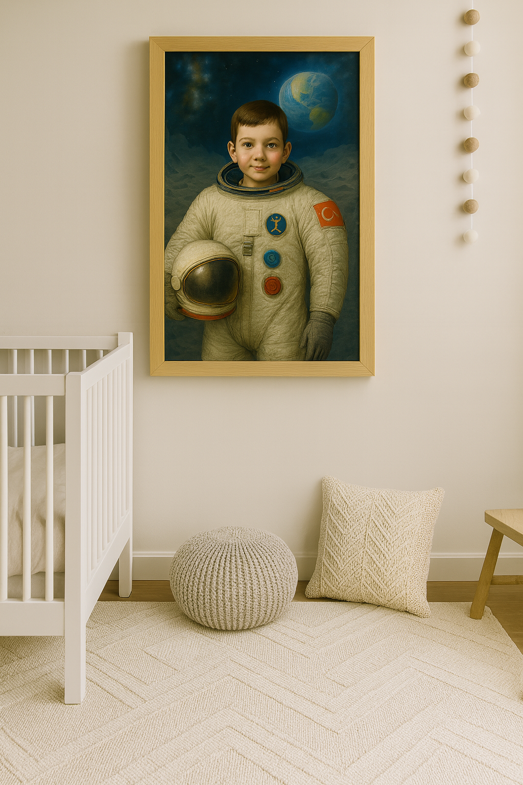 Küçük kaşiflerin odasını bambaşka bir dünyaya dönüştürecek bu kişiye özel astronot tablosu , sevdiklerinizin astronotu kıyafeti içinde gökyüzünde ölümsüzleştiriyor. 🌍✨