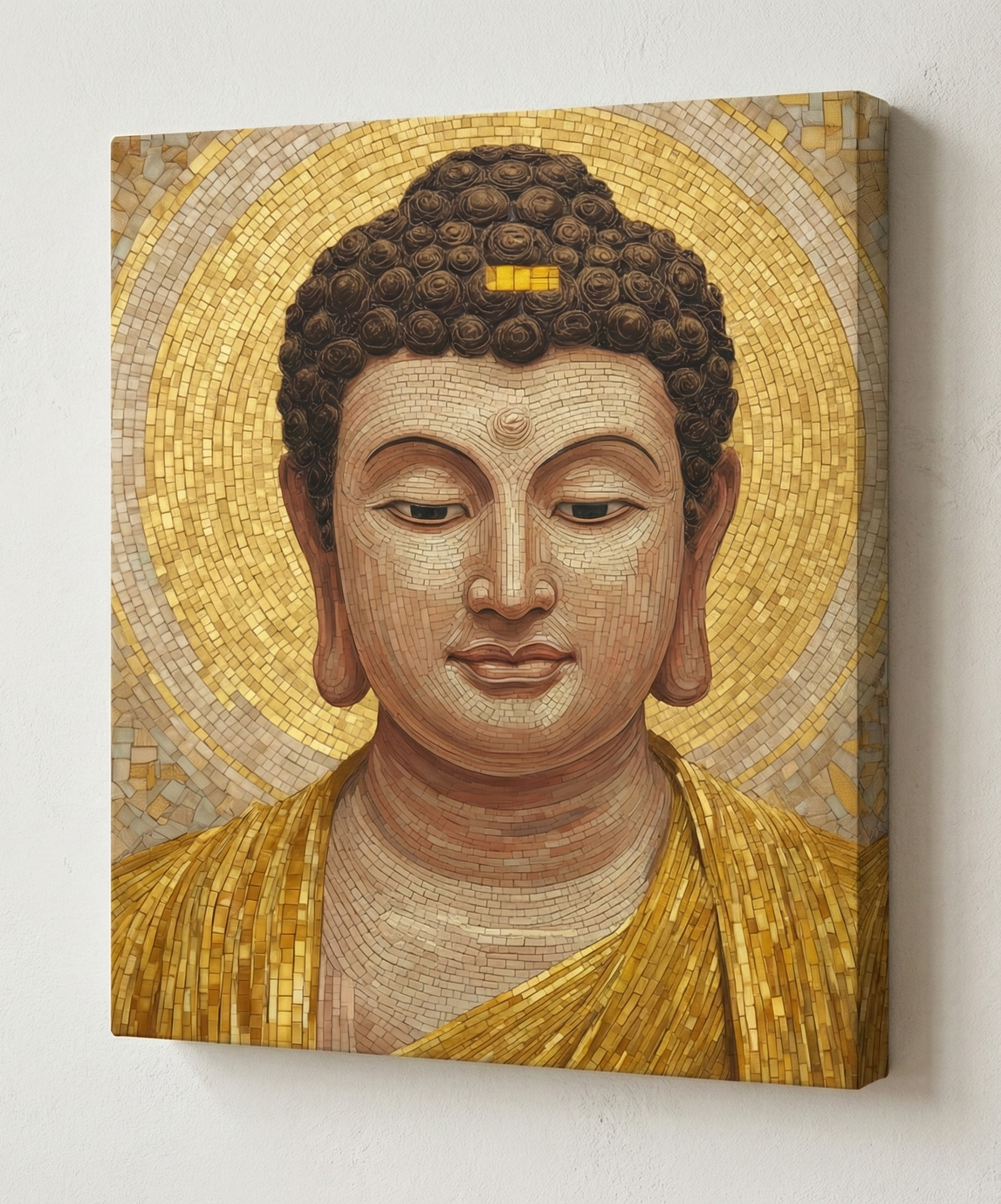 Buddha Altın Mozaik Kanvas Tablo | Zen Meditasyon Duvar Dekoru | Spa – Masaj – Yoga Odası Süslemesi