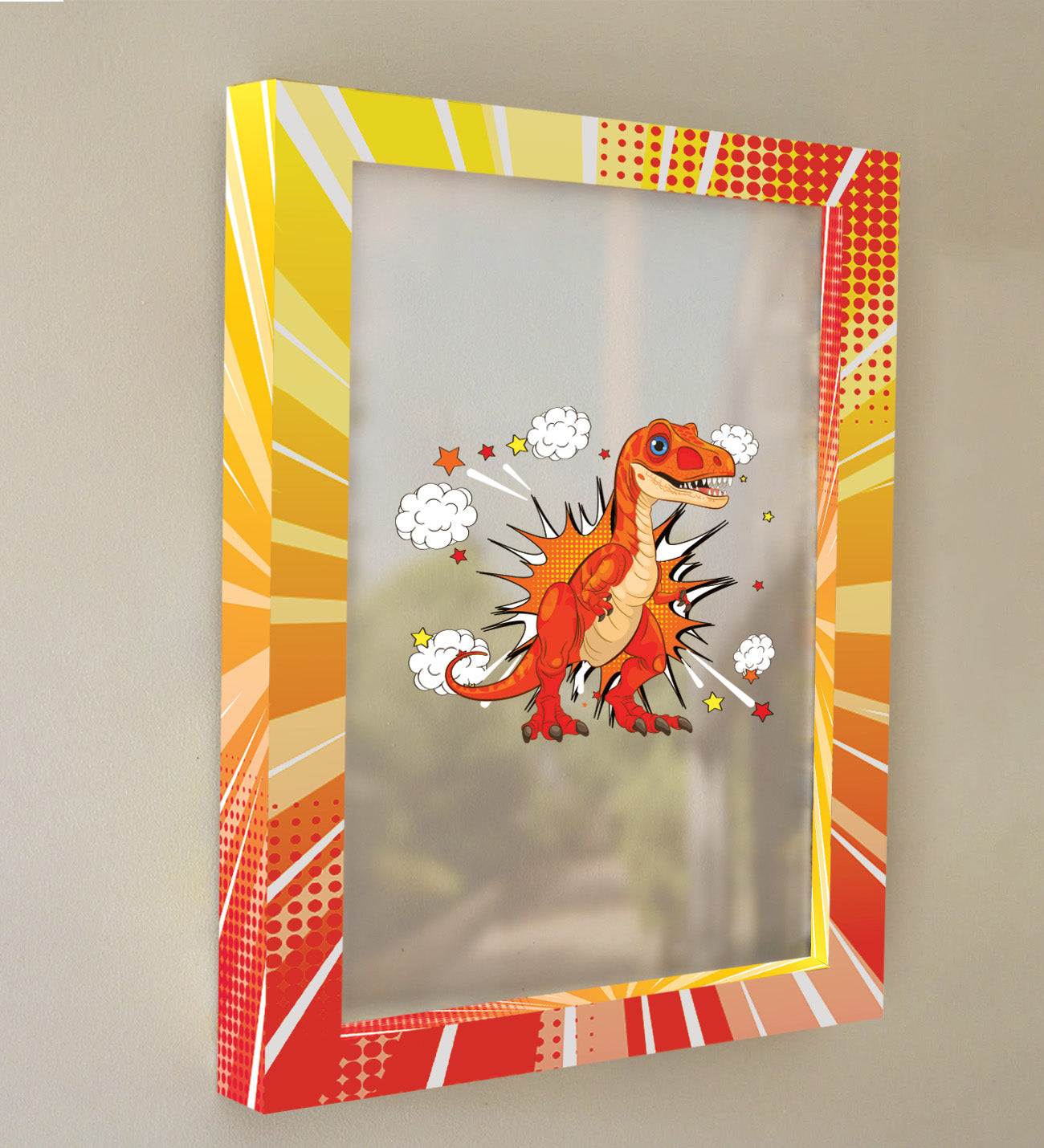 Kaykaylı dinozor + patlayan çizgi roman efekti Çerçeveli Tablo-Kişiye Özel