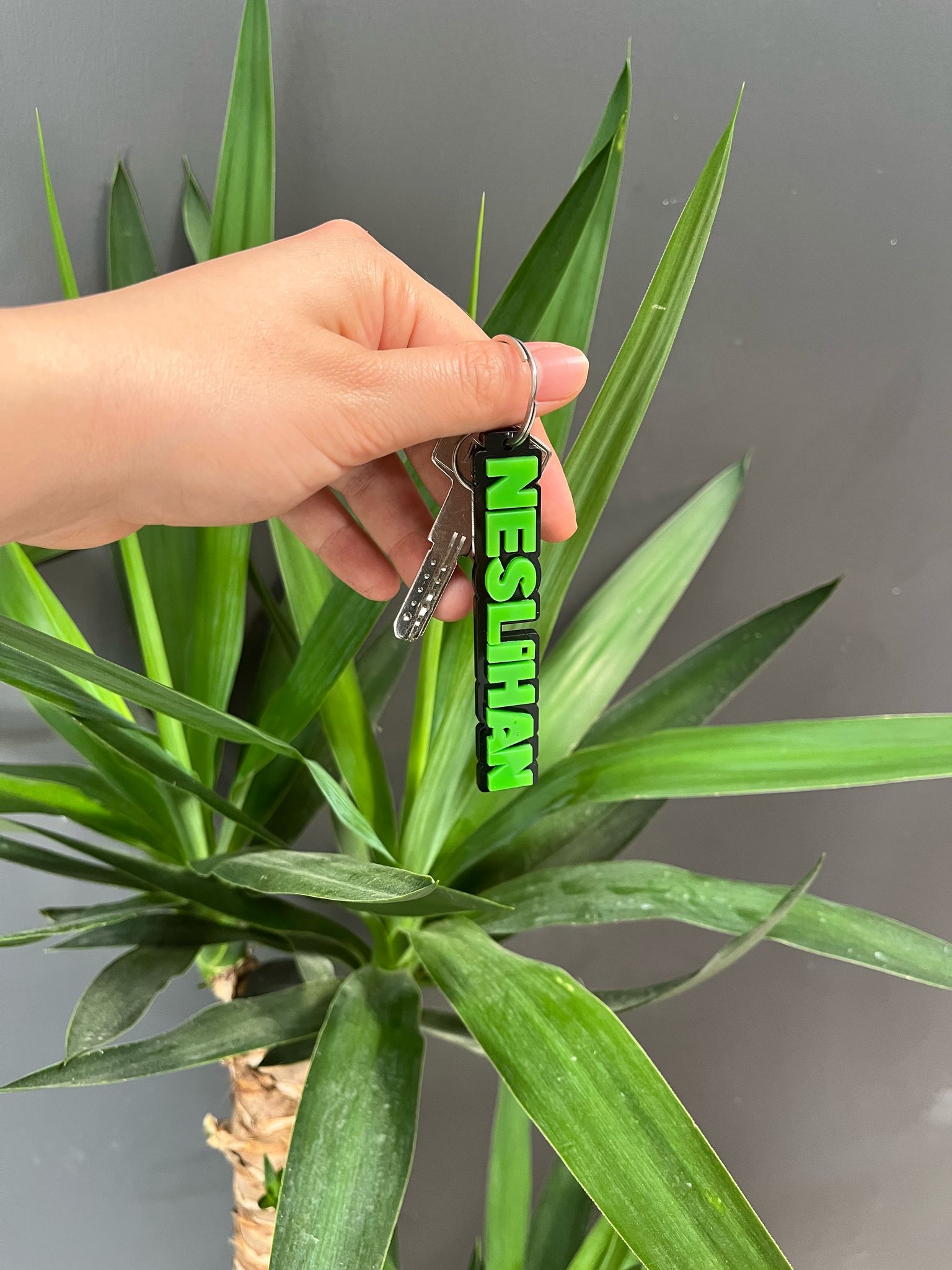 Kişiye özel tasarımıyla dikkat çeken bu anahtarlık, isminizle kişiselleştirilerek benzersiz bir hediye alternatifi sunar.; - Pleksi malzemesi sayesinde şık ve modern bir görünüm kazanan bu anahtarlık, günlük kullanımınızda estetik bir dokunuş sağlar.; - Gençlerin enerjisini yansıtan renkli tasarımı ile her yaştan kullanıcıya hitap eder ve günlük kombinlerinizde kolayca uyum sağlar.; - Üretiminde yer alan materyallerin kalitesiyle dayanıklılığı artırılmış olup uzun süreli kullanım vaat eder.; - Yurt içinde üretilmiş olmasıyla yerel ekonomiyi destekleyen bu ürün, hem çevreye duyarlı hem de ulusal kaynakların korunmasına katkıda bulunur.;