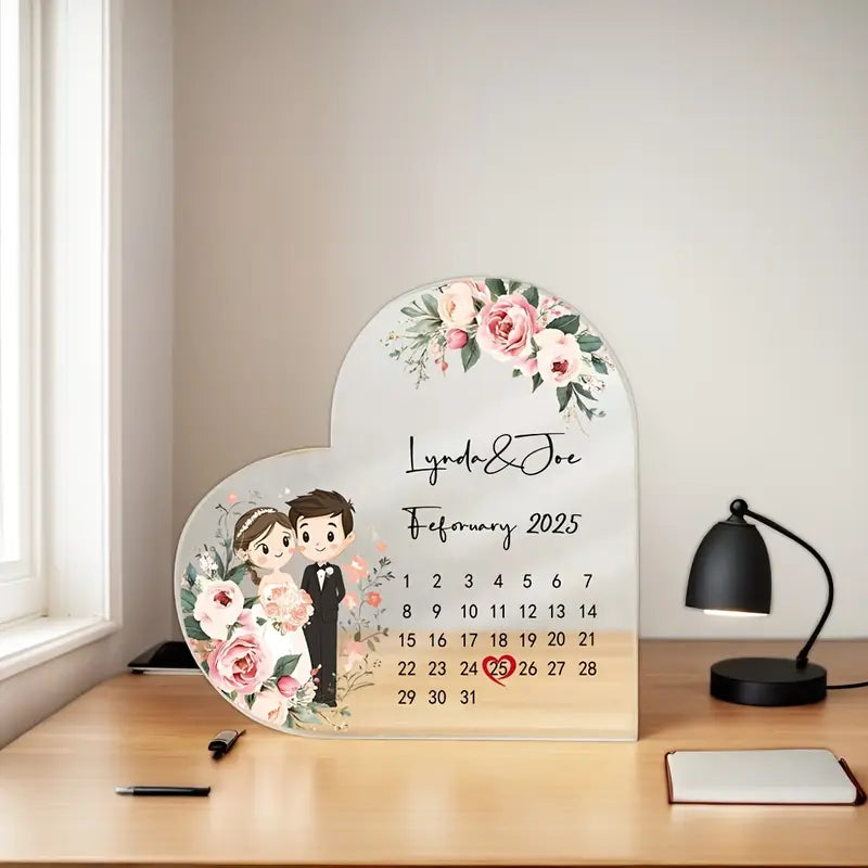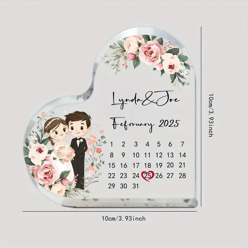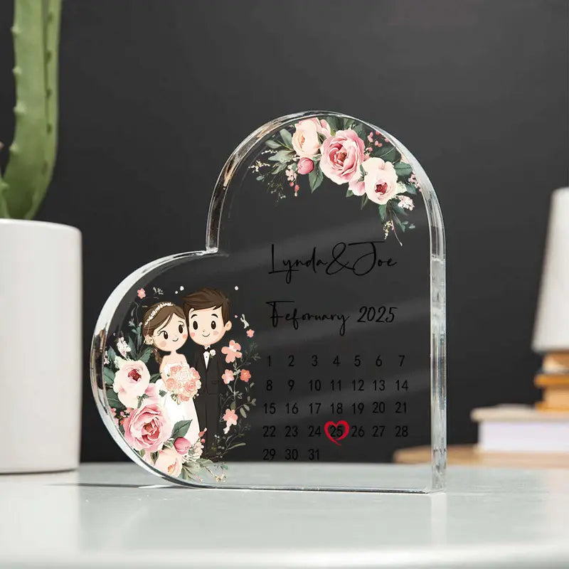 Kişiye Özel Kalp Şeklinde Düğün & Yıldönümü Hediyesi Zarif Çiçekli Akrilik Dekor