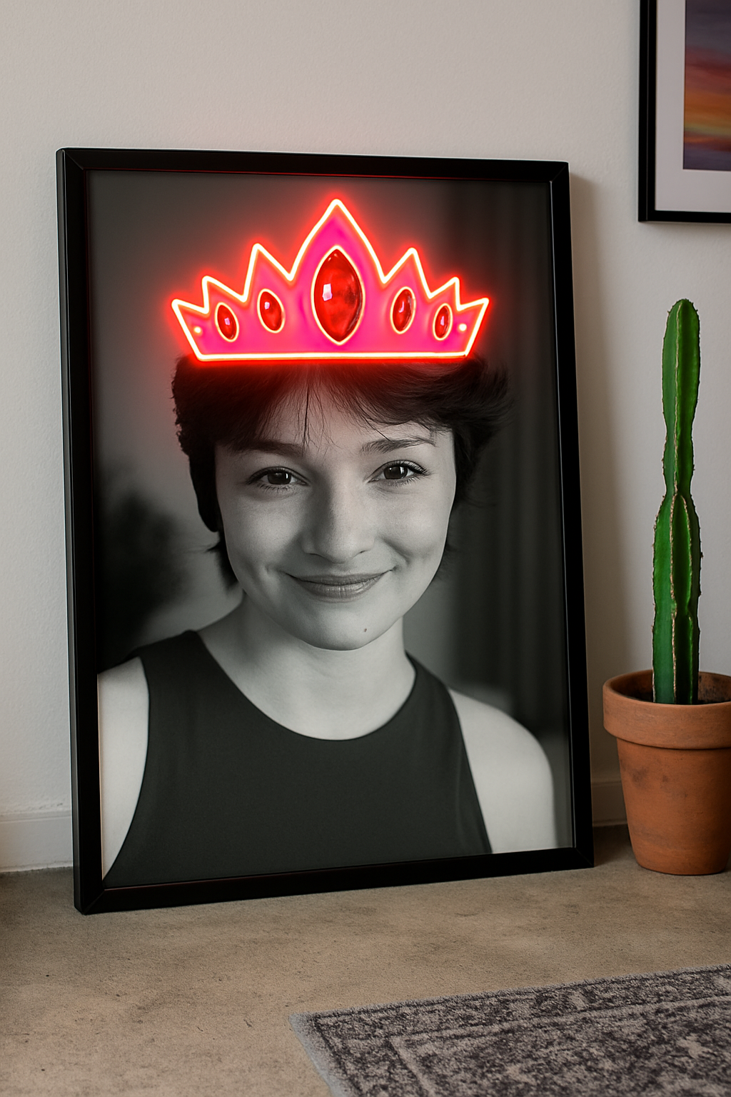 Kişiye Özel Siyah Beyaz Portre -Neon Taçlı Kadın Çalışması