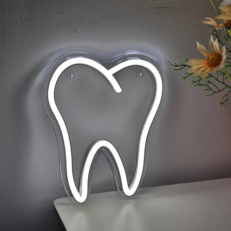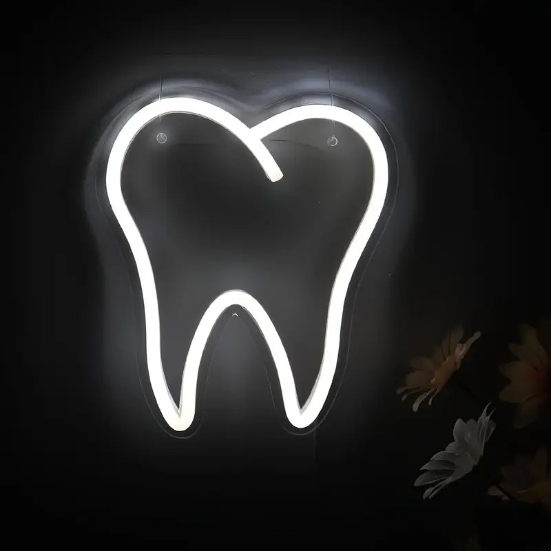 Neon Diş Hekimi Diş Temalı Işıklı Dekoratif Duvar Aydınlatması (Beyaz - 20 Cm x17 Cm )