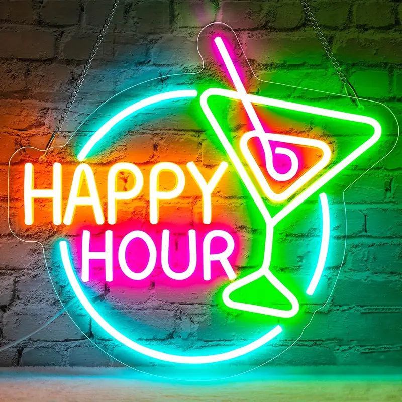 Bar, kafe, restoran ve ev dekorasyonu için tasarlanmış Neon Happy Hour – Bar Temalı Aydınlatma, bulunduğu ortama enerjik ve modern bir hava katıyor. Happy Hour yazısı ile bar kültürünü yansıtan bu şık neon ışık, hem müşterilerin ilgisini çekecek hem de mekanınıza unutulmaz bir ambiyans sağlayacak dekoratif bir parçadır.
