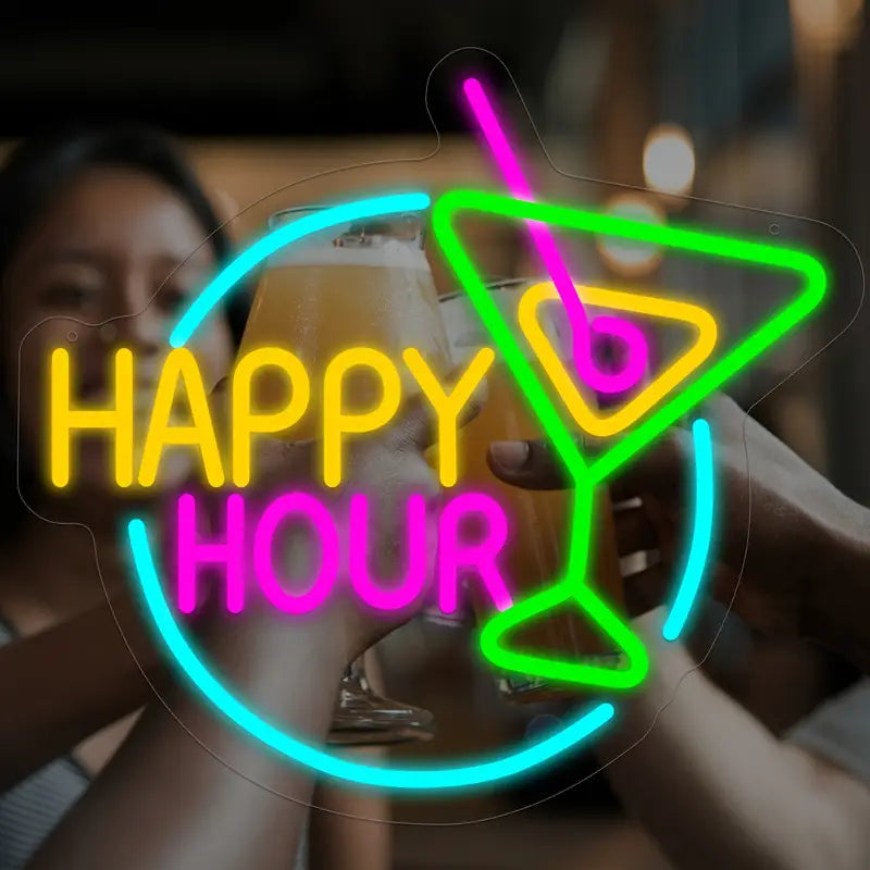 🍹 Barınızın veya evinizin atmosferini bir üst seviyeye taşıyacak dekoratif bir seçim: Neon Happy Hour – Bar Temalı Aydınlatma!