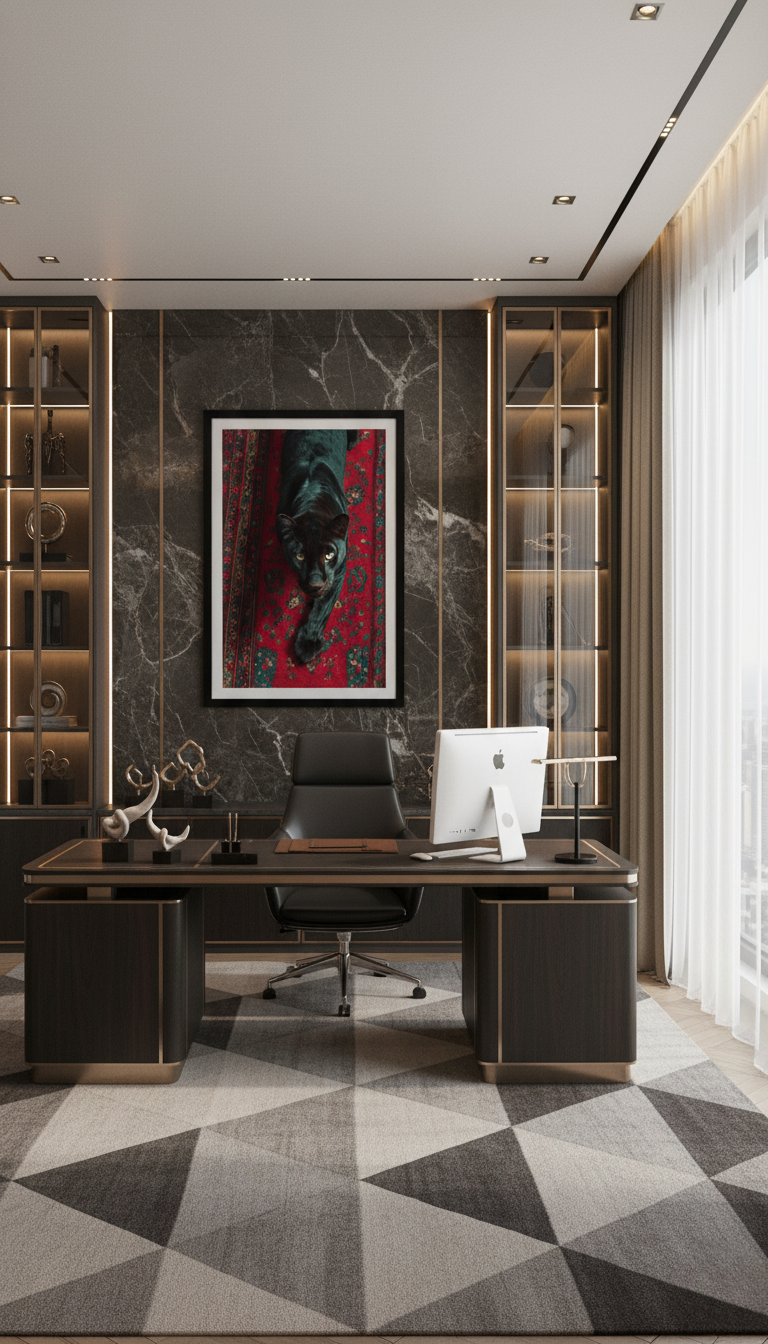 Gücü, asaleti ve gizemi duvarlarınıza taşıyın! Siyah çerçeveli panter temalı bu dekoratif tablo, modern tasarımıyla ofis ve ev dekorasyonuna sofistike bir dokunuş kazandırır. Kırmızı tonlu zemin üzerindeki güçlü panter görseli, dikkat çekici kontrastı sayesinde bulunduğu ortama derinlik ve karakter katar. Kaliteli baskı ve mat dokulu yüzeyiyle uzun ömürlü kullanım sunar. Ofis odaları, çalışma alanları veya salon dekorasyonu için ideal bir seçenektir. Modern, minimal ve etkileyici tarzı sevenler için mükemmel bir tamamlayıcıdır. Anahtar kelimeler: panter tablo, siyah çerçeveli duvar dekoru, ofis dekorasyon tablosu, modern sanat baskı, güçlü duvar tablosu, hediye dekor tablo.