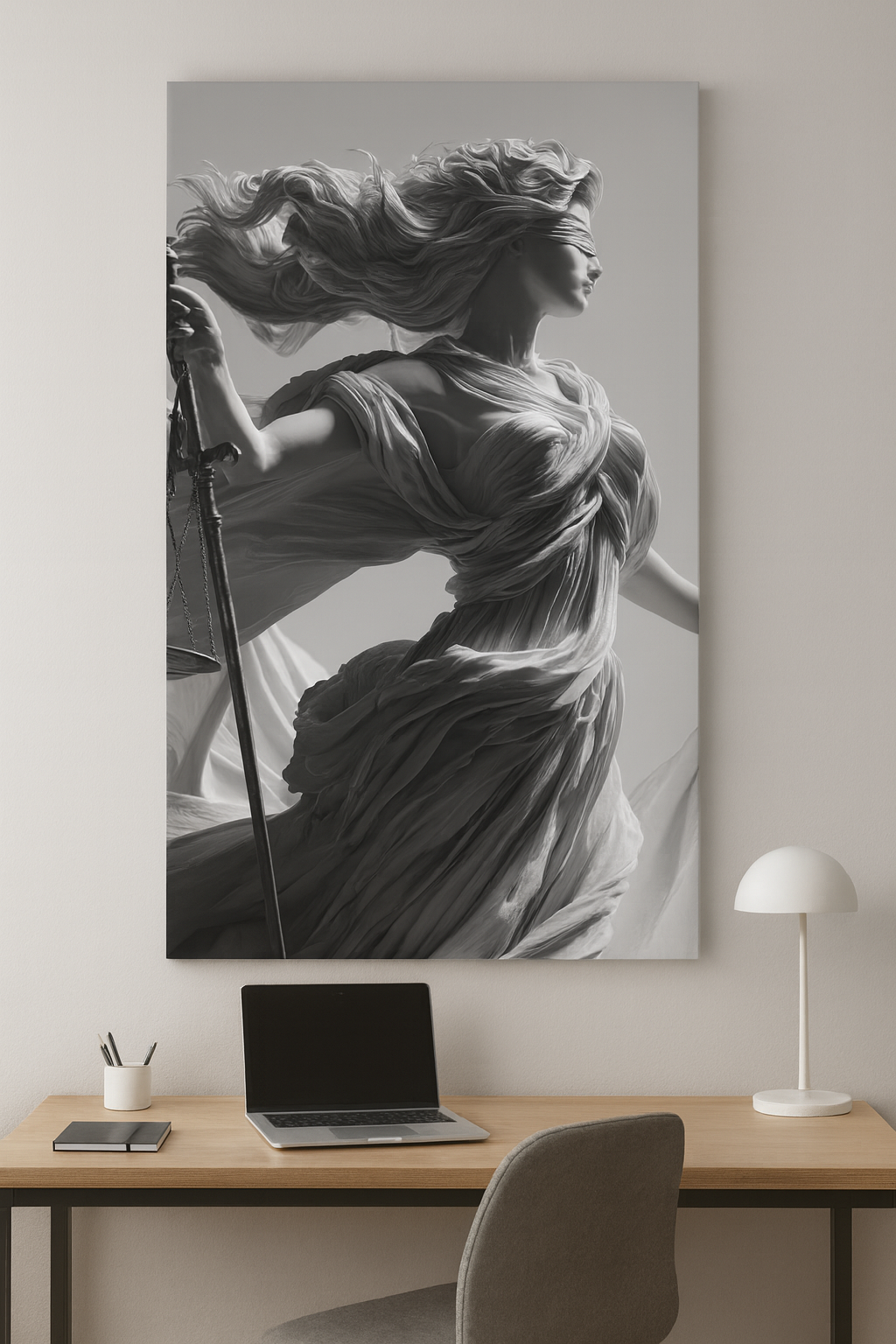 Themis Adalet Tanrıçası Siyah Beyaz Kanvas – Avukat ve Hukuk Ofislerine Özel Dekoratif Tablo